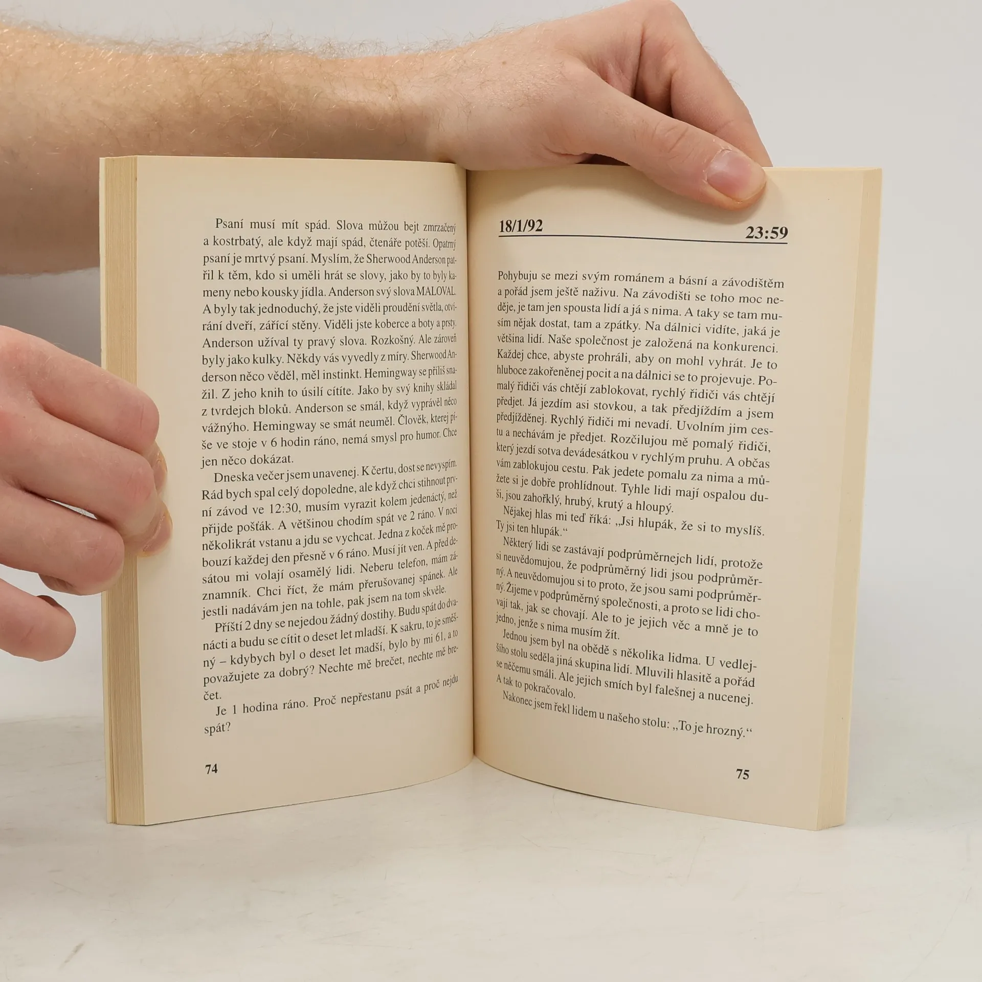 Bukowski – profesionální narušitel klidu, básník losangeleského podsvětí píšící s bláznivou romantickou naléhavostí o poražených, kteří jsou méně strojení než vítězové, a s nesentimentálním soucitem k lidem na společenském okraji. Deník přináší postřehy ze života slavného spisovatele, vášnivého dostihového sázkaře a stárnoucího muže. Tyto deníkové poznámky psal Charles Bukowski v roce 1991 a 1992 na svém novém počítači. Je to volný proud myšlenek a asociací. Bukowski se v jednasedmdesáti letech stává z aktéra spíše divákem. Pozoruje lidi na dostizích, na dálnici, v restauracích, v supermarketech. Dobírá si své ctitele a ostatní spisovatele. Cítí, že již brzy zemře, přesto je jeho próza vtipná a čtivá.