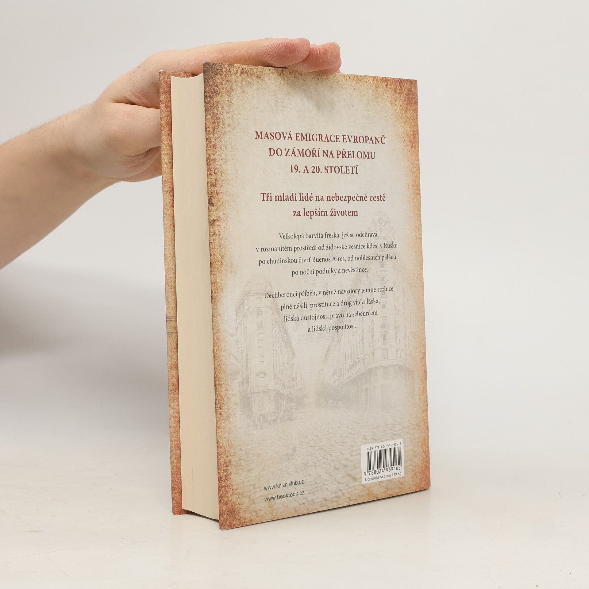 Masová emigrace Evropanů do zámoří na přelomu 19. a 20. století. Tři mladí lidé na nebezpečné cestě za lepším životem Velkolepá barvitá freska, jež se odehrává v rozmanitém prostředí od židovské vesnice kdesi v Rusku po chudinskou čtvrť Buenos Aires, od noblesních paláců po noční podniky a nevěstince. Dech beroucí příběh, v němž navzdory temné stránce plné násilí, prostituce a drog vítězí láska, lidská důstojnost, právo na sebeurčení a lidská pospolitost.
