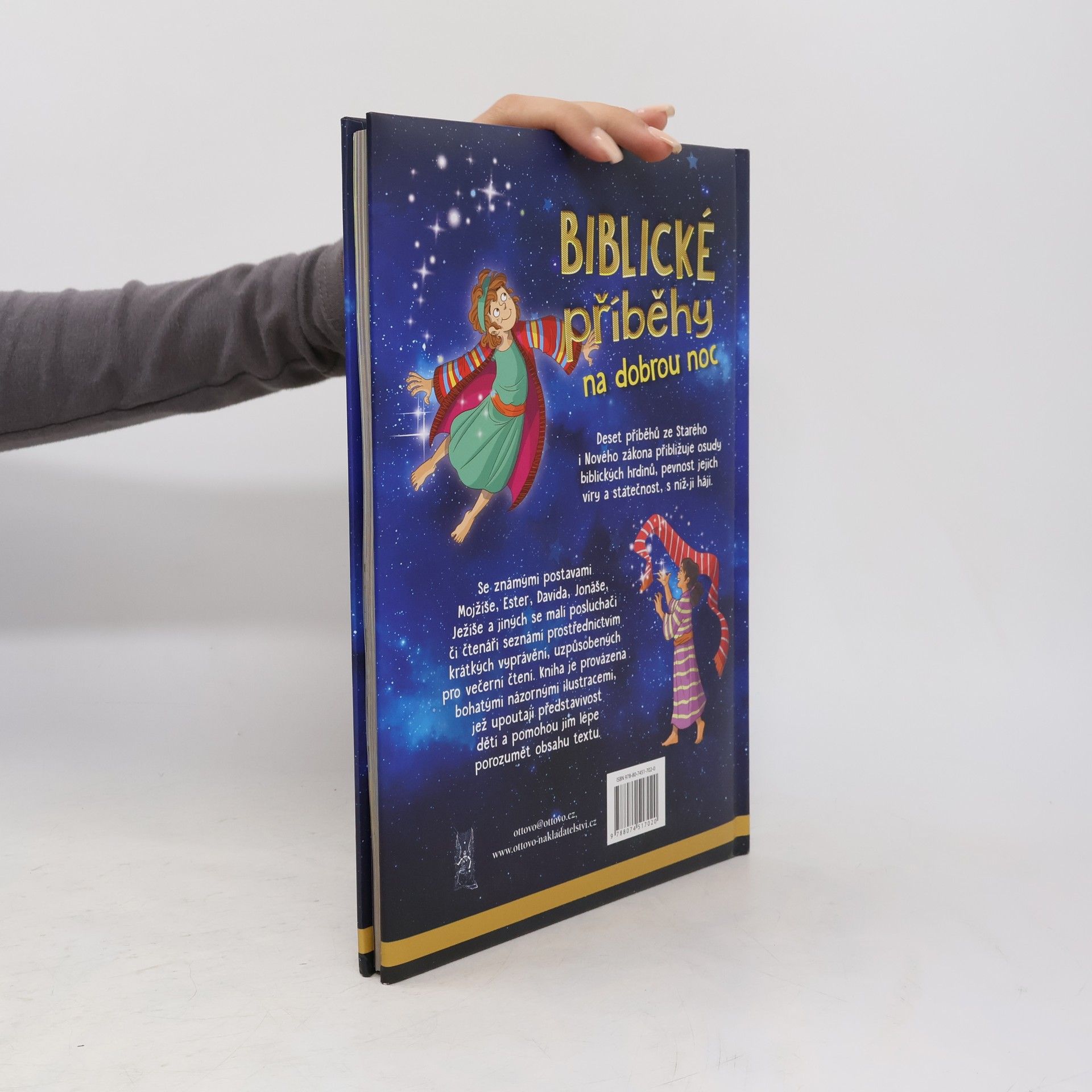 Čti mi před spaním… prosím! S Biblickými příběhy na dobrou noc mohou děti, než se uloží ke spánku, příjemně zakončit den. Díky textu, který děti snadno osloví, a ilustracím, které upoutají dětskou představivost, se Biblické příběhy na dobrou noc stanou oblíbenou knížkou, na niž se budou každý večer těšit. Deset příběhů ze Starého i Nového zákona jim přiblíží osudy biblických hrdinů, pevnost jejich víry a statečnost, s níž ji hájí. Tato vyprávění budou mít děti ještě raději, budou-li si je číst s někým, kdo je má rád.