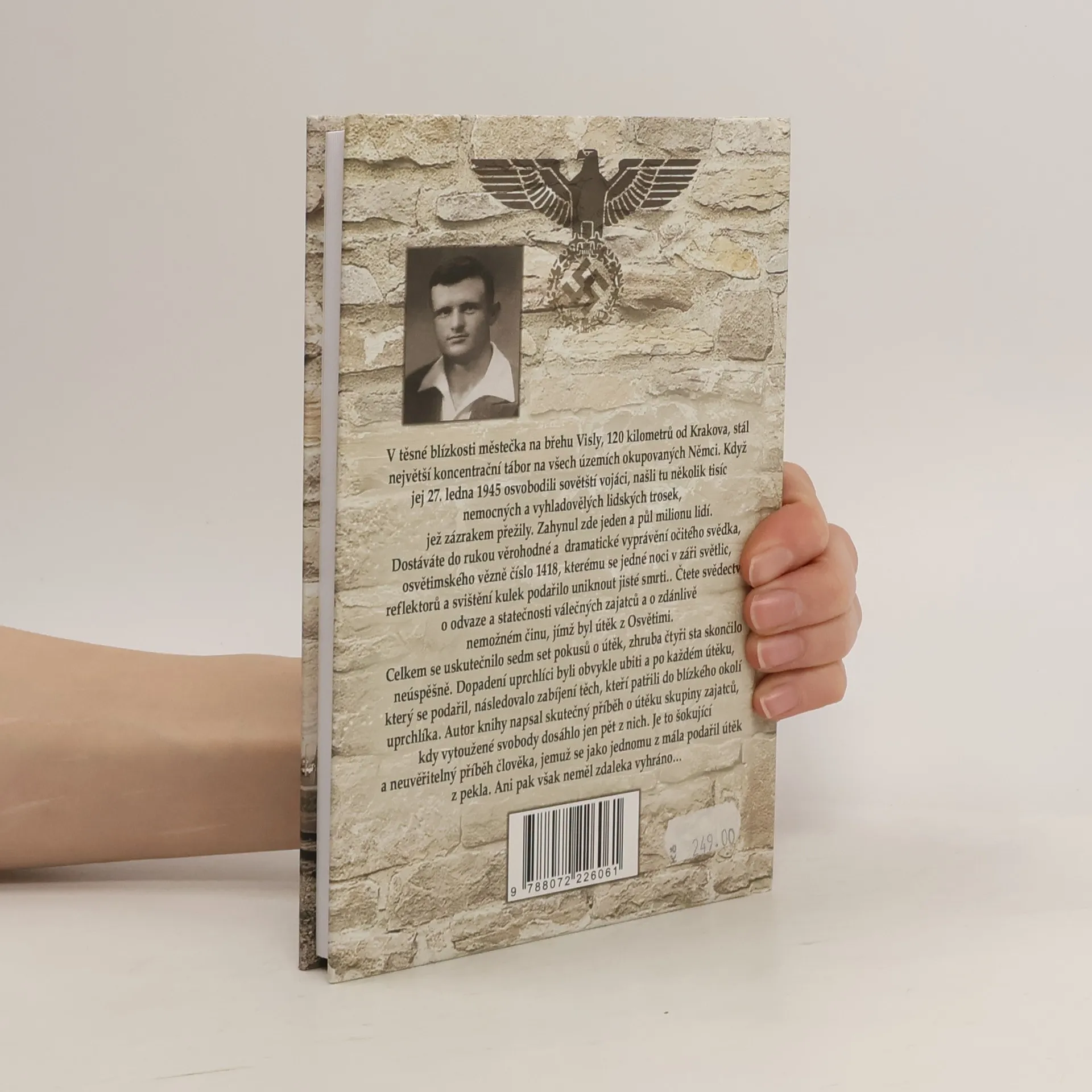 Šokující skutečný příběh člověka, jenž unikl z pekla Osvětimi Věrohodné a dramatické vyprávění očitého svědka, osvětimského vězně číslo 1418, kterému se jedné noci v záři světlic, reflektorů a svištění kulek podařilo uniknout jisté smrti… V těsné blízkosti městečka na břehu Visly, 120 kilometrů od Krakova, stál největší koncentrační tábor na všech územích okupovaných Němci. Když jej 27. ledna 1945 osvobodili sovětští vojáci, našli tu několik tisíc nemocných a vyhladovělých lidských trosek, jež zázrakem přežily. Zahynul zde jeden a půl miliónu lidí. Čtěte svědectví o odvaze a statečnosti válečných zajatců a o zdánlivě nemožném činu, jímž byl útěk z Osvětimi. Celkem se uskutečnilo sedm set pokusů o útěk, zhruba čtyři sta skončilo neúspěšně. Dopadení uprchlíci byli obvykle ubiti a po každém útěku, který se podařil, následovalo zabíjení těch, kteří patřili do blízkého okolí uprchlíka. Autor knihy napsal skutečný příběh o útěku skupiny zajatců, kdy vytoužené svobody dosáhlo jen pět z nich. Je to šokující a neuvěřitelný příběh člověka, jemuž se jako jednomu z mála podařil útěk z pekla. Ani pak však neměl zdaleka vyhráno…