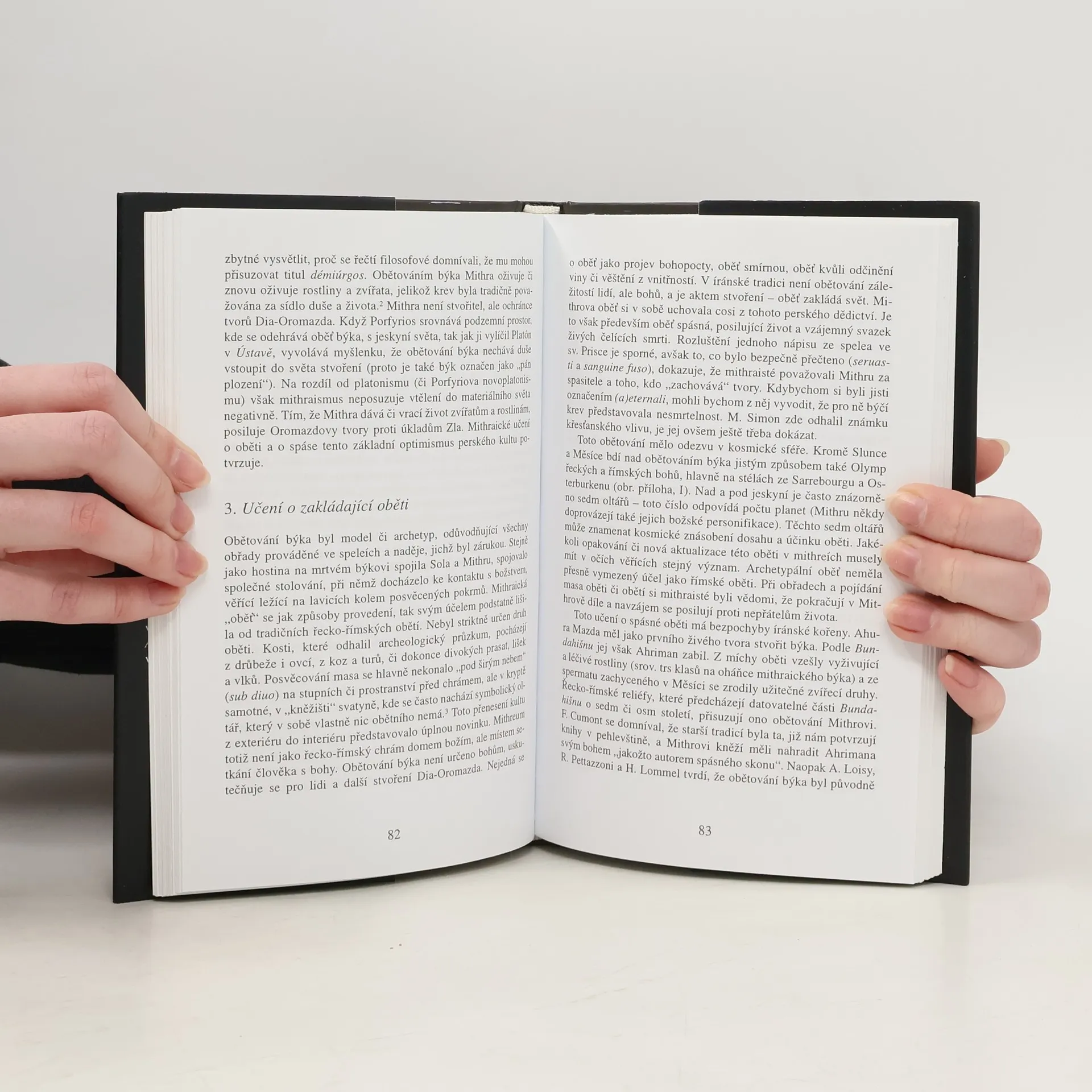 Práce Roberta Turcana, profesora na pařížské Sorbonně, zaplňuje bílé místo na mapě odborných publikací zabývajících se náboženstvími antiky. Mithraismus, mysterijní náboženství původem z Východu, měl v časech římské říše řadu příznivců, zejména mezi příslušníky armády. Kniha se soustředí zejména na vývoj ústřední postavy mithraismu od védského Mitry po římského Mithru a vyčerpávajícím způsobem informuje o jeho kultu. Jednotlivé kapitoly jsou věnovány šíření mithraismu v antickém světě, ikonografii tohoto náboženského směru, hierarchii stupňů zasvěcení, učení, ale i zániku mithraismu. Na základě autorových srovnávacích studií můžeme sledovat vývoj mithraismu na pozadí dalších antických mystérií a náboženských kultů.