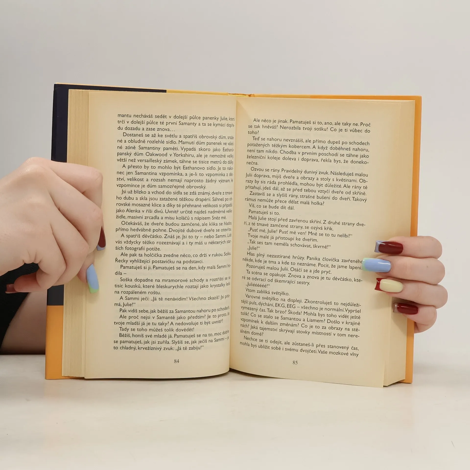 Mladé vědecké pracovnici Julii Gordonové se podařilo proniknout do tajemného prostoru lidské paměti. Její výzkum by mohl znamenat významný pokrok při léčbě duševních poruch a nemocí souvisejících s odumíráním mozkových buněk, pro talentovanou a inteligentní Julii znamenal však daleko víc - podařilo se jí tak zachránit život vlastní sestře. Julie a Samanta jsou dvojčata, avšak dvojčata zcela odlišná jak povahou, tak schopnostmi, a dochází mezi nimi k mnoha konfliktům, pro něž se sestry téměř nestýkají. Samanta, nadaná malířka, jednoho dne upadne do kómatu a lékaři jí nedávají žádnou naději na přežití. Julie se rozhodne zasáhnout, a díky své vědecké metodě se dostane do "krajiny vzpomínek" své sestry. Zjistí, že Samantu se zřejmě někdo pokusil zabít. Kdo, proč a jak? Julie se musí vrátit daleko do své i sestřiny minulosti, aby odhalila zločince, jenž se pokouší zahladit stopy dávné vraždy dalším zločinem. Úspěch v souboji s vrahem jí přines nejen radost ze záchrany sestry, ale i nečekané poznání - Julie si uvědomí, jak hluboký vztah ji k sestře váže, a díky tomu přehodnotí i svůj dosavadní život. Oblíbený žánr vědecko-fantastického románu tak přerůstá v důmyslný psychologický příběh o složité cestě za tajemstvím lidských duší.