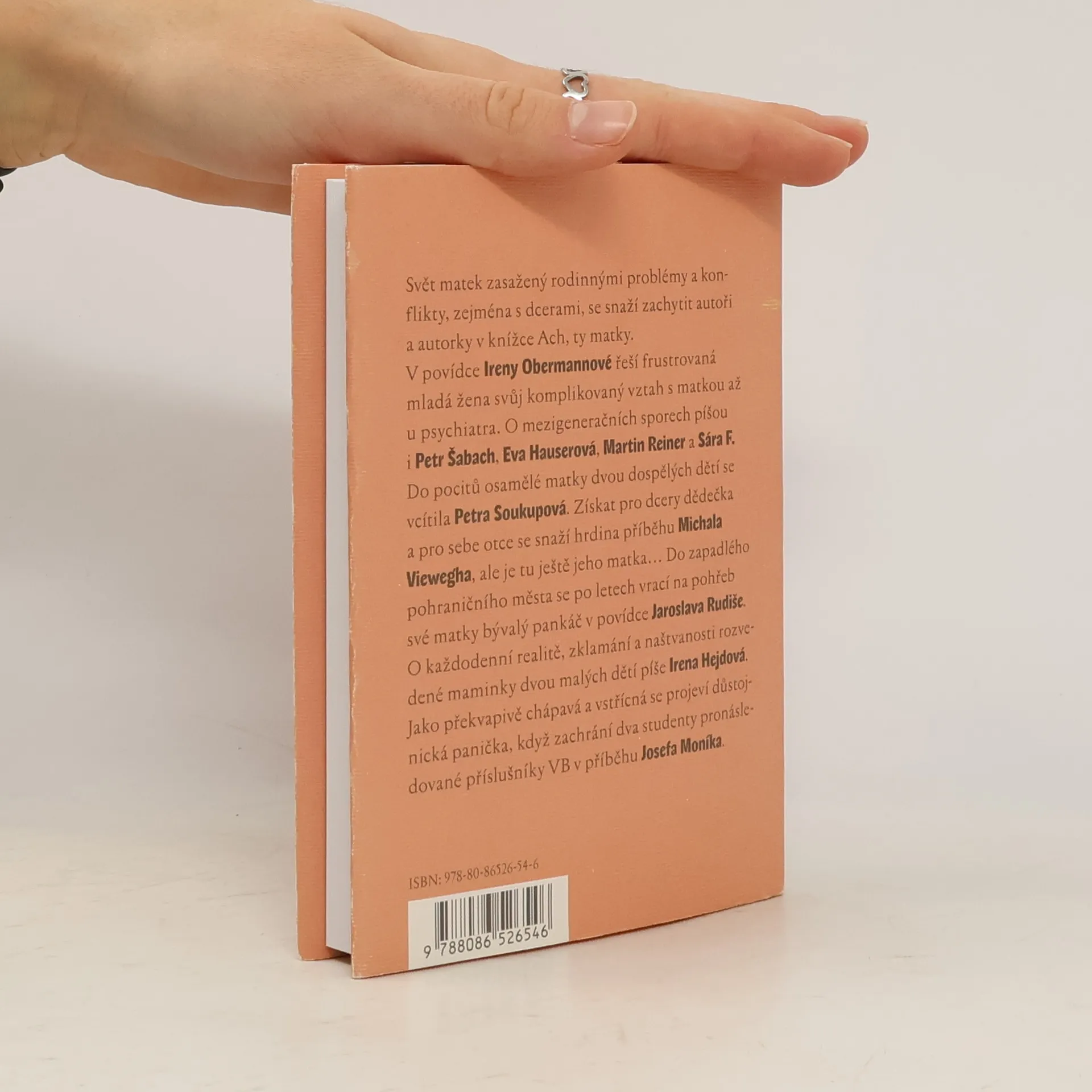 Nový soubor edice Česká povídka obsahuje především čtivé příběhy o složitých vztazích dcer a jejich matek. Dále jsou v něm povídky o matce samoživitelce, o hledání dědečka, které zhatí právě matka a další. Svět matek zasažený rodinnými problémy a konflikty, zejména s dcerami, se snaží zachytit autoři a autorky v knížce Ach, ty matky. V povídce Ireny Obermannové řeší frustrovaná mladá žena svůj komplikovaný vztah s matkou až u psychiatra. O mezigeneračních sporech píšou i Petr Šabach, Eva Hauserová, Martin Reiner a Sára F. Do pocitů osamělé matky dvou dospělých dětí se vcítila Petra Soukupová. Získat pro dcery dědečka a pro sebe otce se snaží hrdina příběhu Michala Viewegha, ale je tu ještě jeho matka... Do zapadlého pohraničního města se po letech vrací na pohřeb své matky bývalý pankáč v povídce Jaroslava Rudiše. O každodenní realitě, zklamání a naštvanosti rozvedené maminky dvou malých dětí píše Irena Hejdová. Jako překvapivě chápavá a vstřícná se projeví důstojnická panička, když zachrání dva studenty pronásledované příslušníky VB v příběhu Josefa Moníka.