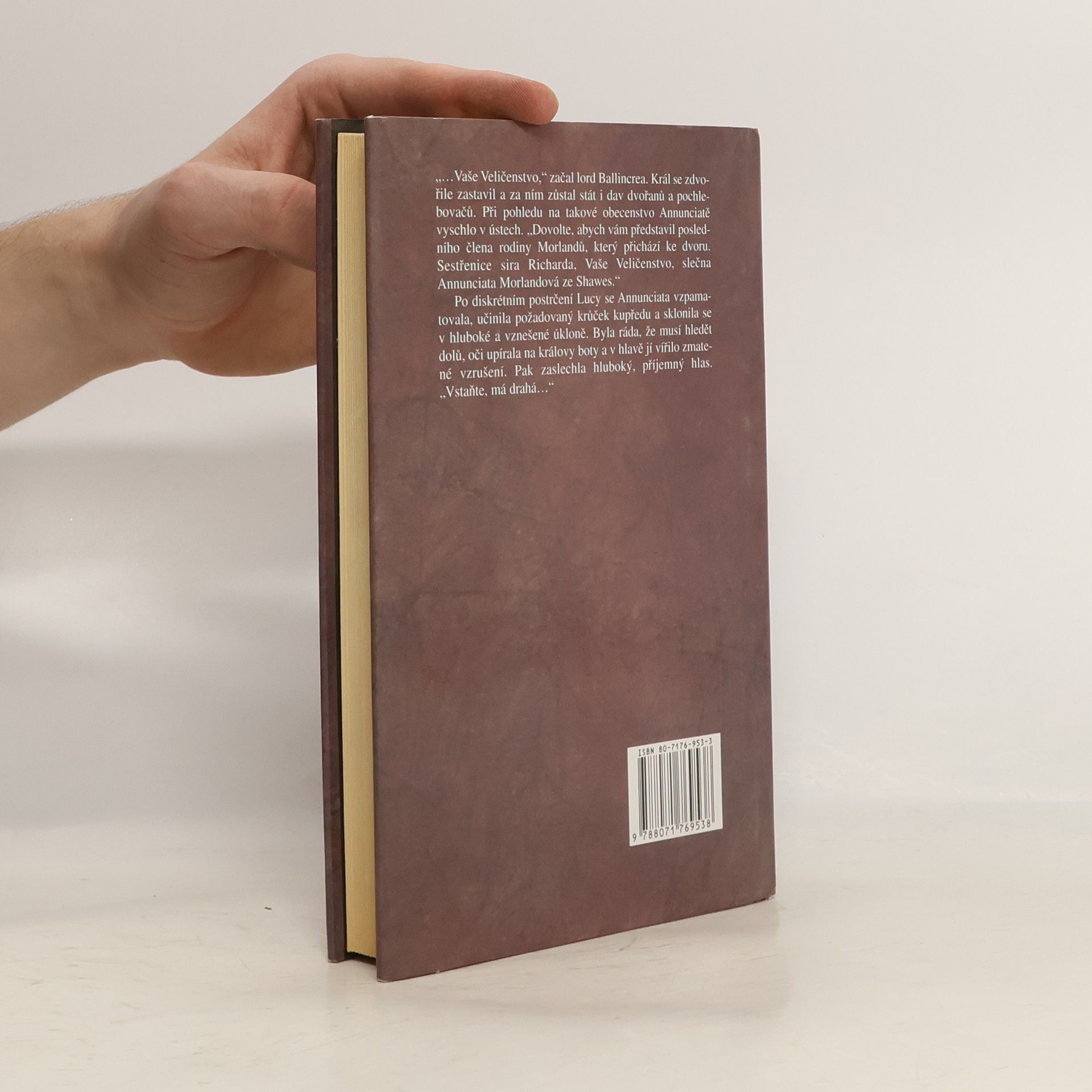 Pátý díl historické romantické ságy vás přenese do Anglie druhé poloviny sedmnáctého století. Morlandové jsou už značně rozvětvenou rodinou, jejíž členové hrají důležitou roli v politice i v armádě. Válka skončila, ale život na Morlandu se vrací do starých kolejí jen velmi pomalu. Raplh, který se vlády nad panstvím ujal po smrtí dědečka, marně vymáhá zpět pozemky, zabavené rodině Cromwellem. Ani rodinný život mu nepřináší štěstí. Po smrti manželky postihuje nevyléčitelná nemoc i jeho syny, Ralph se pomalu smiřuje s osamělostí, ale Morland musí mít dědice. Kterou ženskou šíji ozdobí rodinný náhrdelník z černých perel? Ruth Morlandová na Shawes vychovává svou dceru Annunciatu, aniž by někomu prozradila, kdo je jejím otcem. Annunciata vyrostla v krásnou, nezkrotnou dívku, ale mladý Kit si jejist, že to bude jednou on, kdo se s ní ožení. Ruth však má s Annunciatou jiné plány. Posílá ji do Londýna kde dvoru Karla Stuarta, jenž se nedávno vrátil z vyhnanství v cizině. Chce dát Annunciatě, jediné dědičce Shawes, možnost najít si urozeného manžela a poznat jiný způsob života, než jí nabízí venkovský domov.