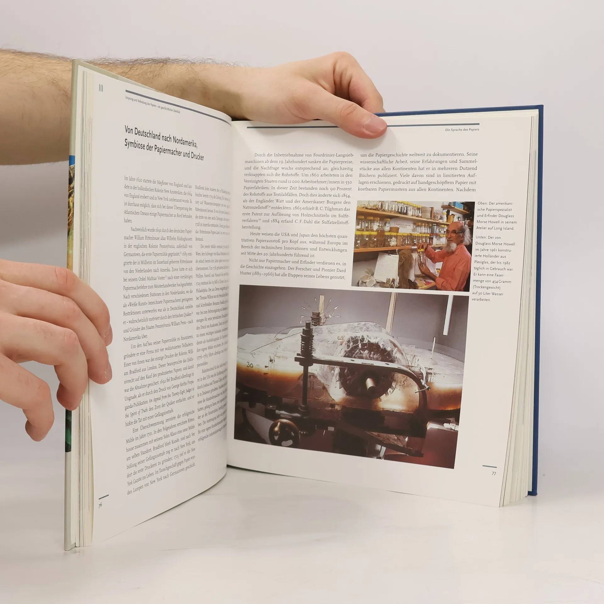 Papier ist der Kulturträger schlechthin, der Wissen über die Vergangenheit bewahrt. Seine Ursprünge liegen im Fernen Osten, wo bereits vorchristliche Zeiten erste papierähnliche Materialien aus Hanf entdeckt wurden. Obwohl die Chinesen die Papierherstellung geheim halten wollten, verbreitete sich das Wissen über Papier nach Korea, Japan und über die Seidenstraße in den arabischen Raum. In Europa wurde Papier erst im 15. Jahrhundert populär, als die Erfindung des Buchdrucks mit beweglichen Lettern den Bedarf steigerte. Mit der Erfindung der Langsieb-Papiermaschine Ende des 18. Jahrhunderts nahm die Papierproduktion rasant zu. Papier wurde nicht nur für Bücher, sondern auch für Geldscheine, Pamphlete, Heißluftballone und architektonische Elemente verwendet. Die Entwicklung von den Vorläufern wie Pergament und Papyrus bis hin zu den Auswanderern, die im 17. Jahrhundert das Wissen nach Nordamerika brachten, wird nachgezeichnet. Die verschiedenen Funktionen von Papier in Religion, Politik und Kunst werden beleuchtet. Traditionelle Papierherstellungsmethoden in Ländern wie Japan, China und Indien bestehen bis heute. Die Autorin berichtet von ihren Reisen in kleine Papiermacherdörfer, wo das Handwerk trotz politischer Schwierigkeiten fortgeführt wird. Papierobjekte wie japanische Schiebetüren und Designartikel sind auch im Westen begehrt. Ende des 20. Jahrhunderts führte die Faszination für Papier zu einer neuen Bewegung, dem „Papier