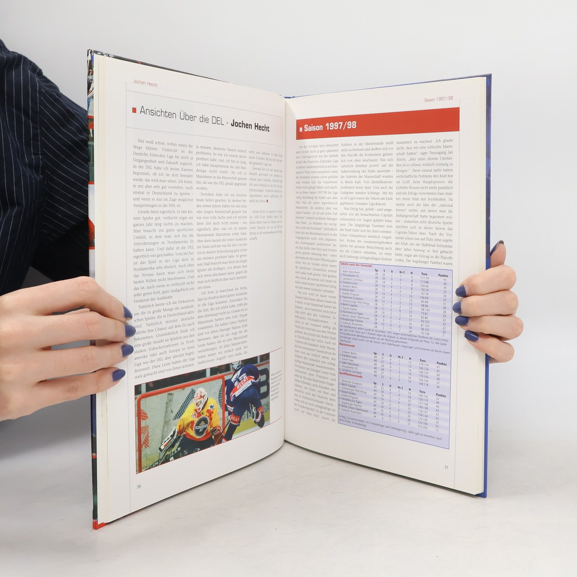 Die Reihe der Jubiläen geht weiter. 2004 gibt es neben 50 Jahren „Wunder von Bern“ und „100 Jahre FIFA“ auch noch „10 Jahre DEL“ zu feiern. Zehn Jahre erscheinen im Vergleich zu anderen Jubiläen zwar ein Klacks, doch tatsächlich repräsentieren sie den Durchbruch einer revolutionären Idee. Vor zehn Jahren musste die gute alte (skandalgeschüttelte) Eishockey-Bundesliga gehen und machte einem durch und durch amerikanisierten System Platz: Amerikanische Saisonstruktur, amerikanische Klubnamen, amerikanische Spieler usw. Was mit großer Skepsis betracht wurde, setzte sich nach einigen Geburtswehen schließlich durch und wurde zu einem Erfolgsprodukt im deutschen Sport. In Zusammenarbeit mit der DEL unternimmt Autor Patrick Reichelt in diesem Buch eine chronologisch geordnete Zeitreise durch zehn Jahre Eishockeygeschichte, erinnert an die großen Erfolge der Kölner Haie, Mannheimer Adler usw., lässt Spielerlegenden wie Hegen, Truntschka und Hecht aufleben, schildert die Ereignisse auf und neben dem Eis. Entstanden ist ein herrlicher Schmöker, der weit über die Auflistung der chronologischen Ereignisse herausgeht und zehn Jahre DEL mit zahlreichen Geschichten, Porträts und Interviews wiederaufleben lässt. Garniert wird das ganze mit packenden Farbbildern und einer AGON-üblichen fundierten Statistik.