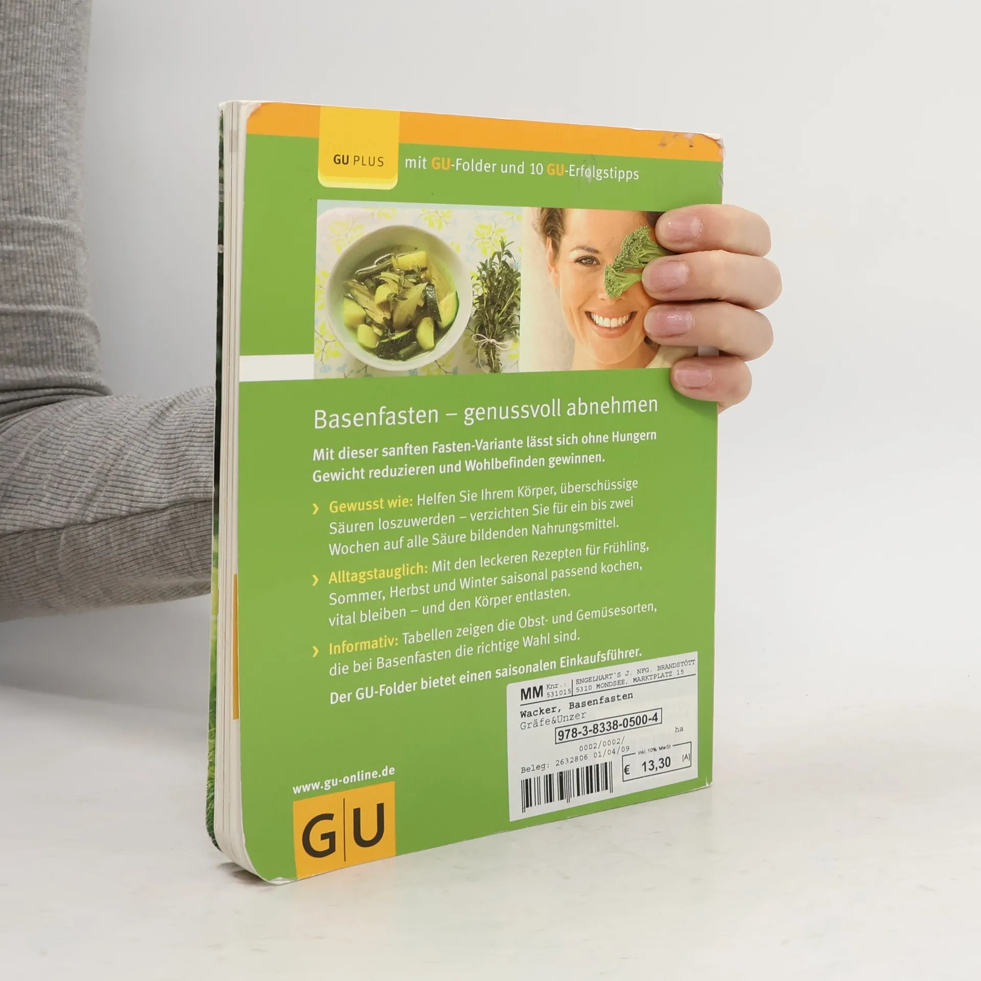 Basenfasten ist die Alternative für alle, die gerne fasten würden, aber aufs Essen nicht verzichten wollen. Die positiven Wirkungen des Fastens lassen sich auch erzielen, indem Sie für begrenzte Zeit, zum Beispiel eine Woche, konsequent allen Säure bildenden Lebensmittel die rote Karte zeigen. Der Lohn der 100-prozentigen Basenkost: weniger Gewicht, mehr Wohlbefinden, schöne Haut, straffes Bindegewebe und Entlastung pur für die Verdauungsorgane. Auf den Speiseplan kommt dabei vor allem frisches, reifes Obst und Gemüse - saisonal ausgewählt! Für jede Jahreszeit gibt es Hintergrundinfos zum Stoffwechsel, nützliche Tipps und jeweils passende basische Rezepte. Die Methode der Autorin ist absolut alltagstauglich und praxiserprobt. Das Buch enthält außerdem einen nach Monaten sortierten herausnehmbaren Einkaufsguide (Folder).