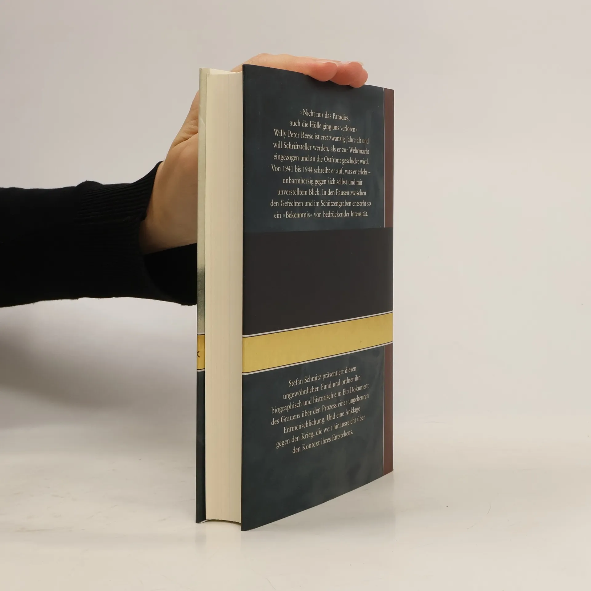 "Nicht nur das Paradies, auch die Hölle ging uns verloren". Willy Peter Reese ist erst zwanzig Jahre alt und will Schriftsteller werden, als er zur Wehrmacht eingezogen und an die Ostfront geschickt wird. Von 1941 bis 1944 schreibt er auf, was er erlebt - unbarmherzig gegen sich selbst und mit unverstelltem Blick. Entstanden ist so ein Bekenntnis von bedrückender Intensität . Ein Dokument des Grauens über den Prozess einer ungeheuren Entmenschlichung. Und eine Anklage gegen den Krieg, die weit hinausreicht über den Kontext ihres Entstehens.