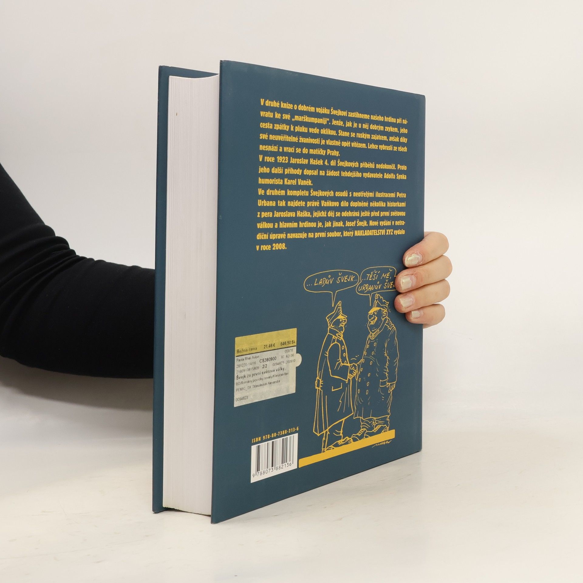IV. - VI. díl. V druhé knize Osudů dobrého vojáka Švejka zastihneme našeho hrdinu při návratu ke své marškumpanii. Jenže, jak je u něj dobrým zvykem, jeho cesta na frontu vede oklikou přes Rusko. V ruském zajetí opět vítězí svou neuvěřitelnou žvanivostí na všech frontách. Lehce vybruslí ze všech nesnází a vrací se zpátky do matičky Prahy. Jaroslav Hašek v roce 1923 4. díl Švejkových příhod nedokončil. Proto další osudy milovaného vojáka dopsal na žádost tehdejšího vydavatele Karla Synka humorista Karel Vaněk. Ve druhém kompletu Osudů dobrého vojáka Švejka s neotřelými ilustracemi Petra Urbana tak najdete právě Vaňkovo dílo doplněné několika historkami z pera Jaroslava Haška, jejichž děj se odehrává ještě před první světovou válkou a hlavním hrdinou je také Josef Švejk.