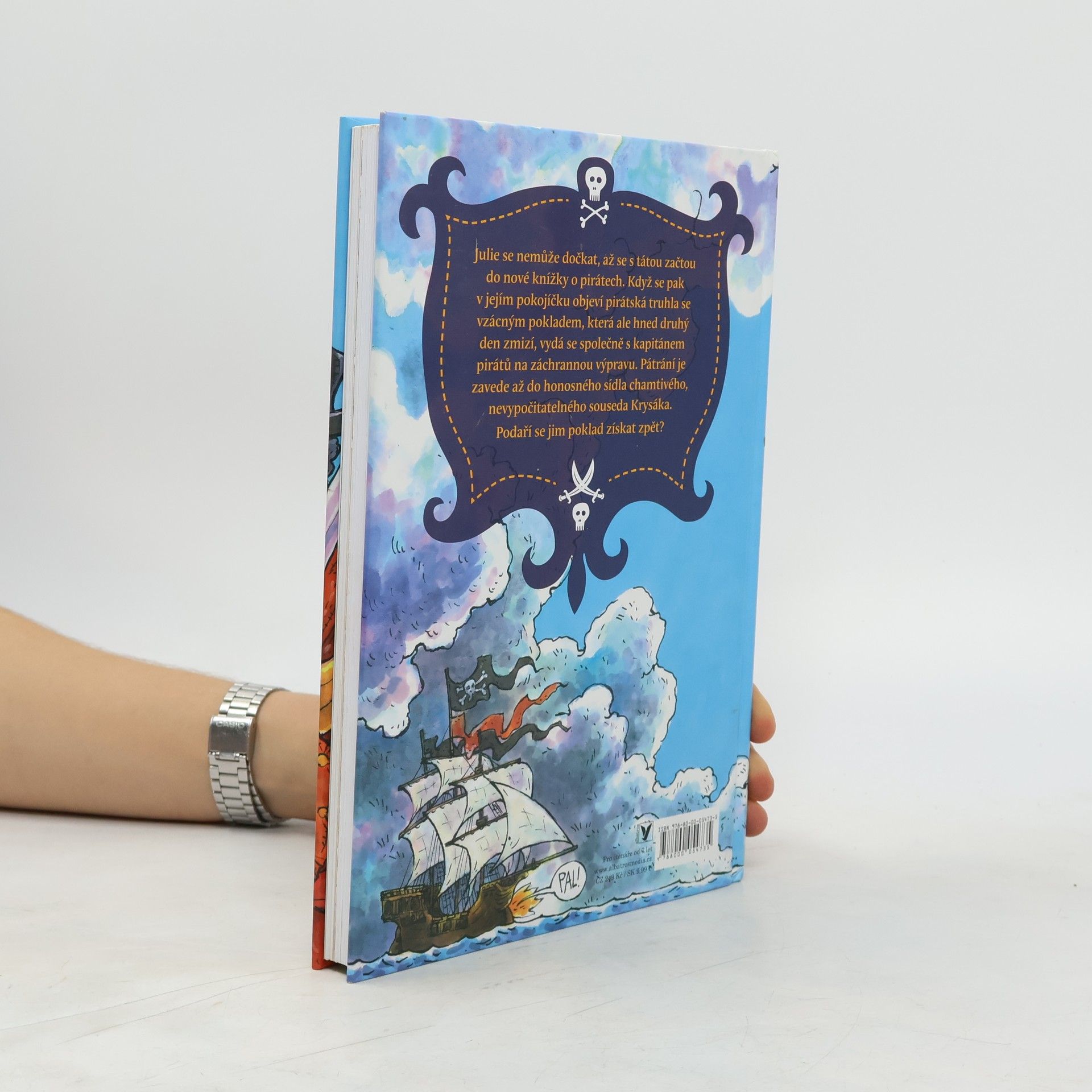 Julie se nemůže dočkat, až se s tátou začtou do nové knížky o pirátech. Když se pak v jejím pokojíčku objeví pirátská truhla se vzácným pokladem, která ale hned druhý den zmizí, vydá se společně s kapitánem pirátů na záchrannou výpravu. Pátrání je zavede až do honosného sídla chamtivého, nevypočitatelného souseda Krysáka. Podaří se jim poklad získat zpět?