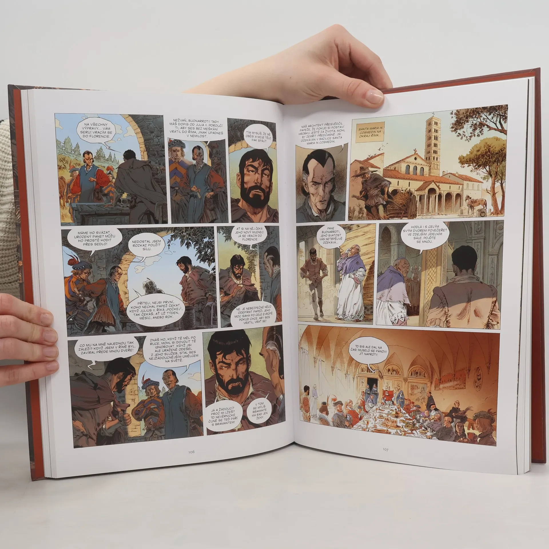 Je srpen roku 1503 a umírá papež Alexandr VI., vlastním jménem Rodrigo Borgia. To je ta pravá chvíle pro zapřisáhlé nepřátele Borgiů, rod della Rovere, aby se intrikami a sliby, jež nehodlají dodržet, pokusili papežský stolec obsadit sami. Giulianovi della Rovere se to také zdaří a stane se z něj papež Julius II. Tím ale boj mezi rody nekončí… Českému čtenáři důvěrně známý Alejandro Jodorowsky má v úmyslu zachytit bouřlivé dějiny Vatikánu v patnáctém a raném šestnáctém století ve volné trilogii, kterou započal sérií Borgia a v níž pokračuje zde. Také pro tento příběh ze středověké Itálie využil služeb italského kreslíře. Theo (Theo Caneschi, Toskánsko 1973) je specialista na historické komiksy: jeho Hliněný trůn se odehrává za stoleté války, po Delabym převzal kresbu zatím posledního dílu série Murena, která se odehrává ve starém Římě.