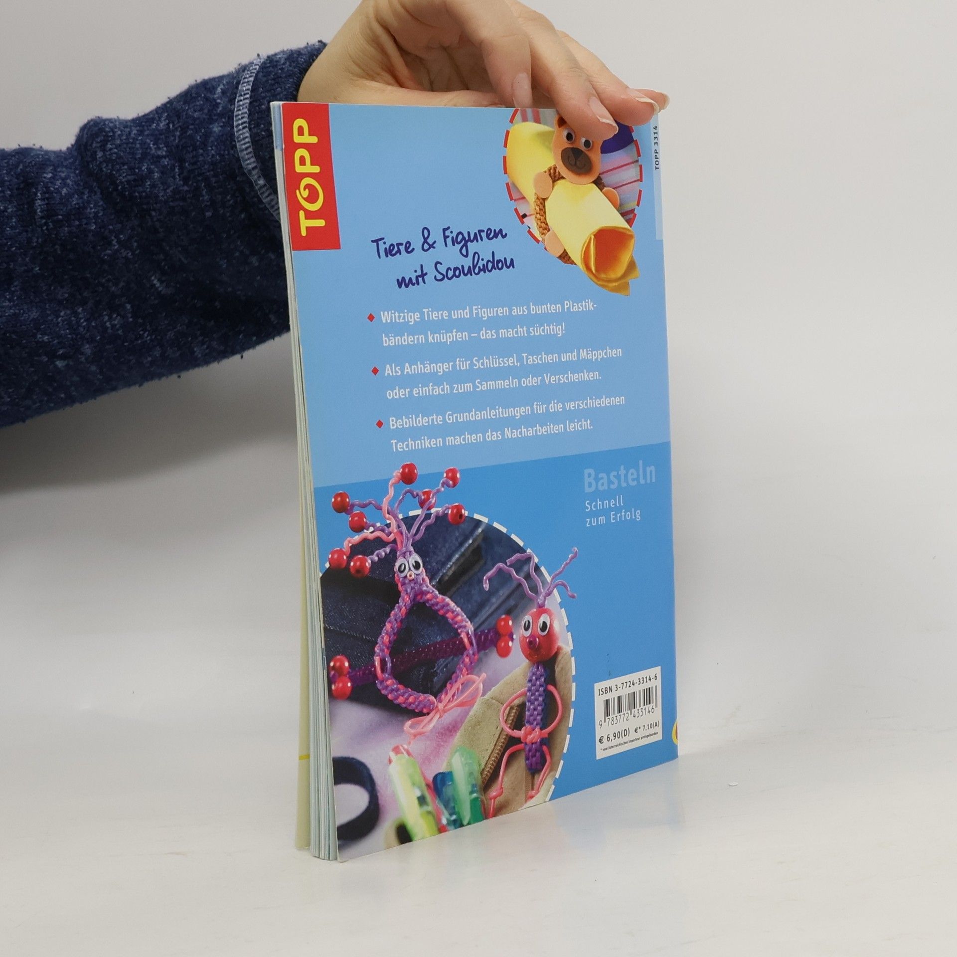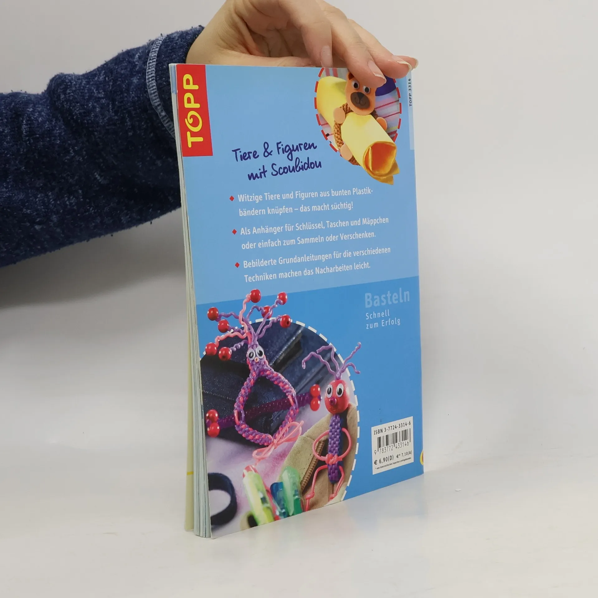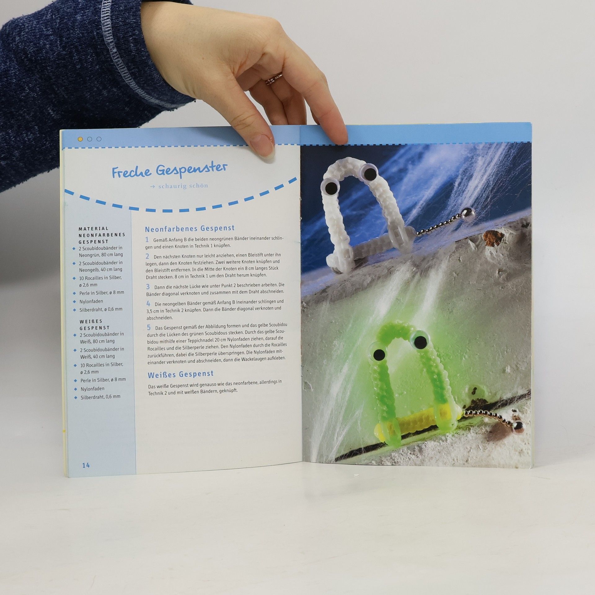 Bilder und Anleitungen zum Basteln von Buchstaben-Scoubidous, wilden Tieren, Gespenstern oder Ausserirdischen - viele neue Knüpfideen mit den bunten Plastikschnüren.