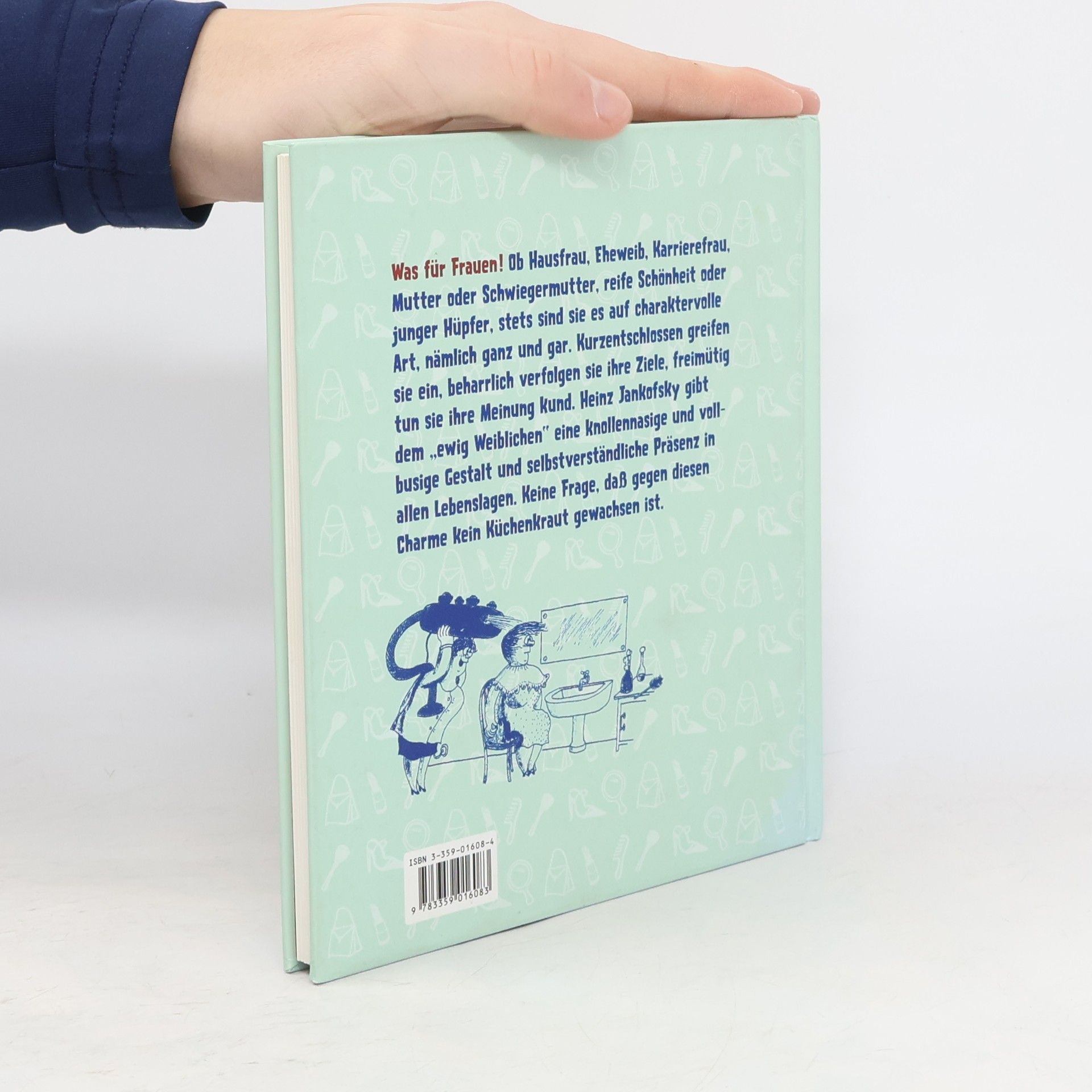 Was für Frauen! Ob Hausfrau, Eheweib, Karrierefrau, Mutter oder Schwiegermutter, reife Schönheit oder junger Hüpfer, stets sind sie es auf charaktervolle Art, nämlich ganz und gar. Kurzentschlossen greifen sie ein, beharrlich verfolgen sie ihre Ziele, freimütig tun sie ihre Meinung kund. Heinz Jankofsky gibt dem "ewig Weiblichen" eine knollennasige und vollbusige Gestalt und selbstverständliche Präsenz in allen Lebenslagen. Keine Frage, dass gegen diesen Charme kein Küchenkraut gewachsen ist.