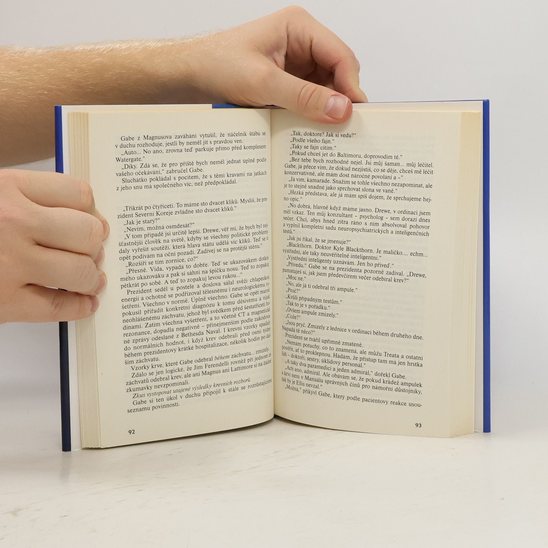 Jednoho dne přistane na Gabeově ranči ve Wyomingu prezidentova helikoptéra a dávný přítel dnes prezident Spojených států přednese lékaři nečekanou žádost: prezidentův osobní lékař za záhadných okolností zmizel a prezident teď chce, aby Singleton nastoupil na jeho místo. Navzdory svým vážným pochybnostem, zda úkol zvládne, Gabe příteli na nabídku kývne. Blíží se nové prezidentské volby a doktor Gabe Singleton musí co nejrychleji najít správnou odpověď. Kdo chce zdiskreditovat hlavu státu? Je za tím ctižádostivý viceprezident Cooper nebo špinavé praktiky tajné služby? Michael Palmer, M. D., autor bestsellerů z lékařského prostředí, nabízí ve svém nejnovějším románu napínavý příběh, jenž se odehrává ve světě vysoké politiky, převratných vědeckých objevů a nejmodernější techniky