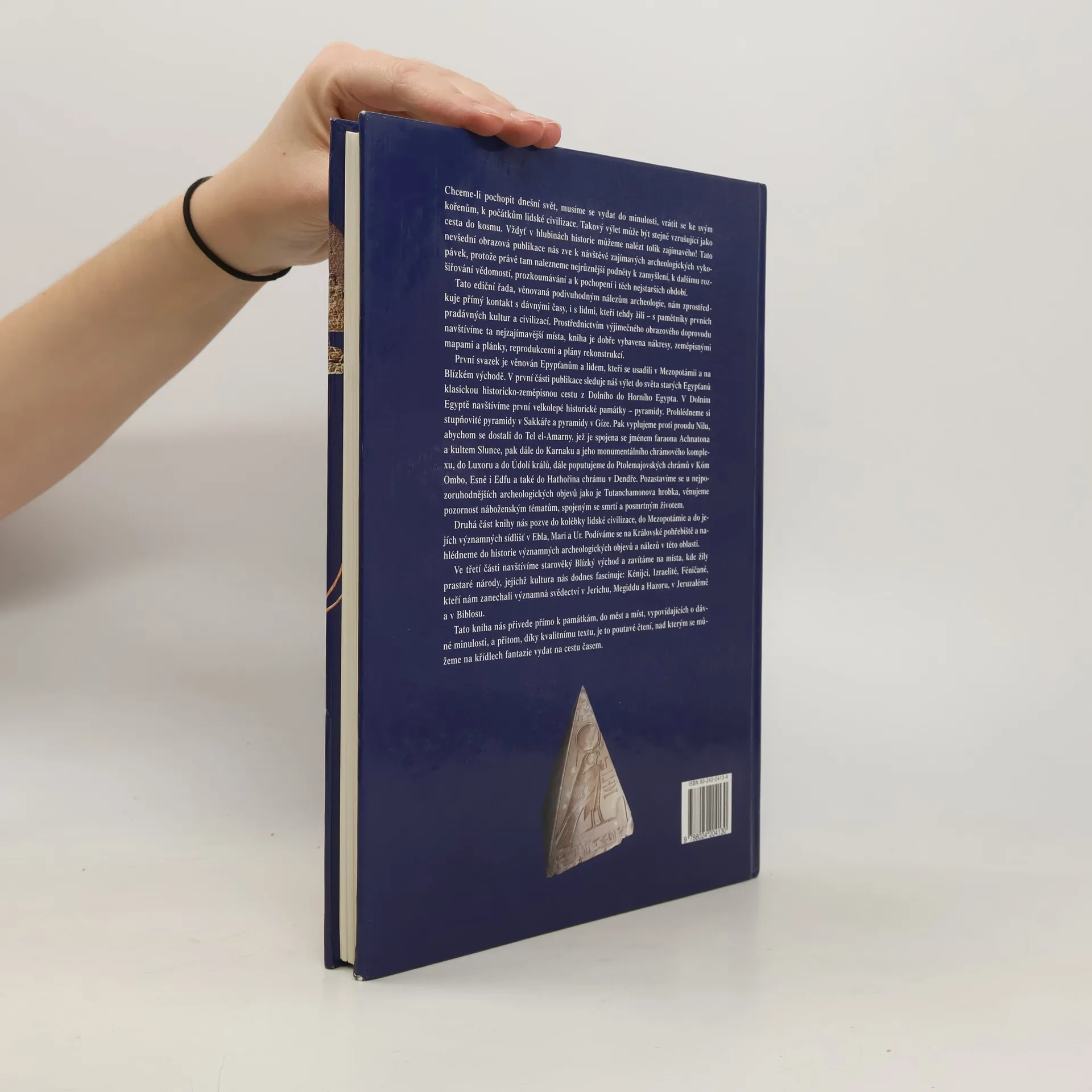 Výpravná obrazová publikace přibližuje významné archeologické památky nejstarších lidských civilizací Egypta, Mezopotámie a Blízkého východu. Publikaci prostřednictvím velmi pěkných barevných fotografií archeologických nálezů, různých kreseb, nákresů i plánků vypovídá o dávné minulosti lidstva. Dozvíme se mnoho zajímavého z historie významných archeologických objevů i o osobnostech kousek po kousku odkrývajících jedinečné památky starověkých civilizací. První, podstatná část knihy je věnovaná památkám Dolního a Horního Egypta - pyramidy, Údolí králů, Tutanchamonova hrobka atd. V další části budeme sledovat archeologické objevy a nálezy v Mezopotámii - Sumerové, Asyřané, Ninive, Babylonie a v oblastech starověkého Blízkého východu - Kananejci, Foiničané, Kumránské svitky atd.
