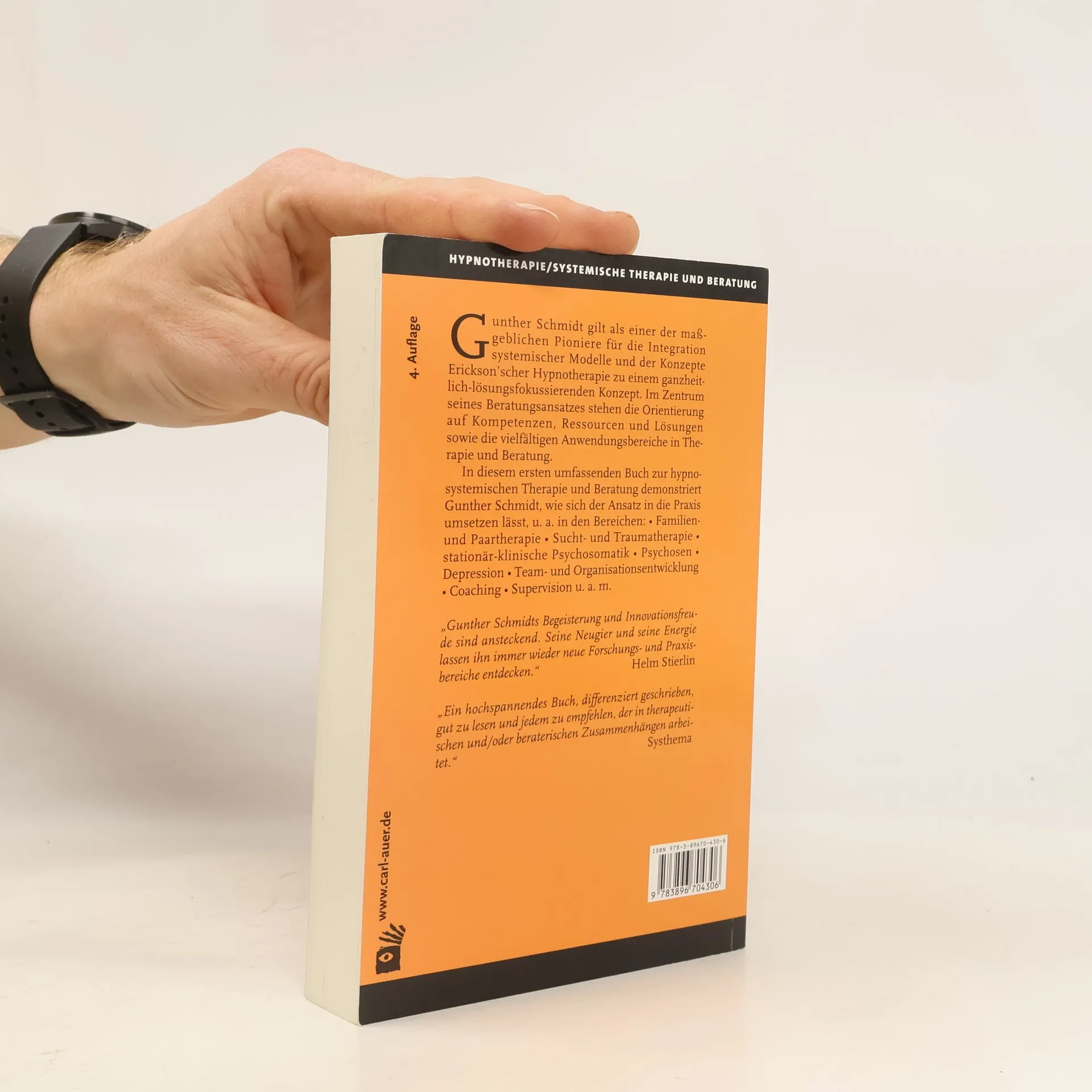 Gunther Schmidt gilt als einer der maßgeblichen Pioniere für die Integration systemischer Modelle und ericksonscher Hypnosetherapie zu einem ganzheitlich-lösungsfokussierenden Konzept. Im Zentrum seines Beratungsansatzes stehen die Orientierung auf Kompetenzen, Ressourcen und Lösungen und die vielfältigen Anwendungsbereiche in Therapie und Beratung. In diesem ersten umfassenden Buch zur hypnosystemischen Therapie und Beratung lässt Gunther Schmidt den Leser an dieser erfolgreichen Vorgehensweise teilhaben und gibt zugleich viele Anregungen für die tägliche Praxis, u. a. in den Bereichen: Familien- und Paartherapie • Sucht- und Traumatherapie • stationär-klinische Psychosomatik • Psychosen • Depression • Team- und Organisationsentwicklung • Coaching • Supervision u. a. m.