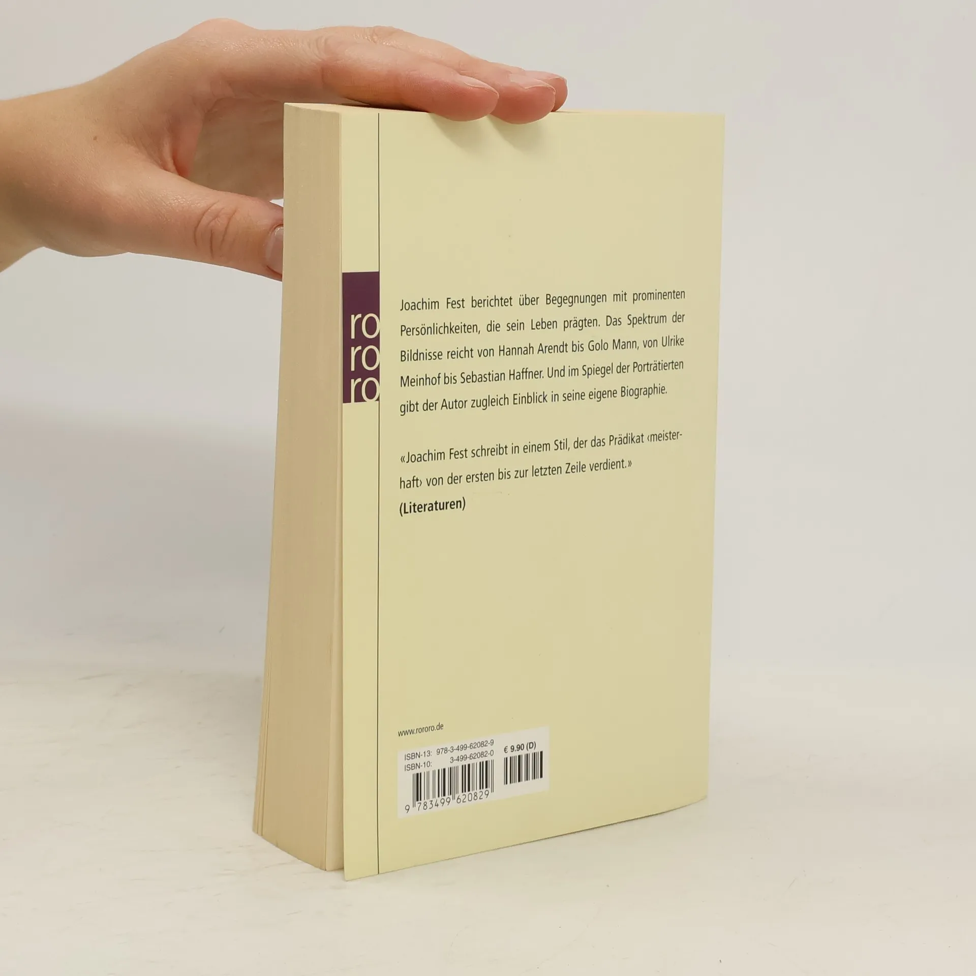 Joachim Fest berichtet über Begegnungen mit prominenten Persönlichkeiten, die sein Leben prägten. Das Spektrum der Bildnisse reicht von Hannah Arendt bis Golo Mann, von Ulrike Meinhof bis Sebastian Haffner. Und im Spiegel der Porträtierten gibt der autor zugleich einen Einblick in seine eigene Biographie.
