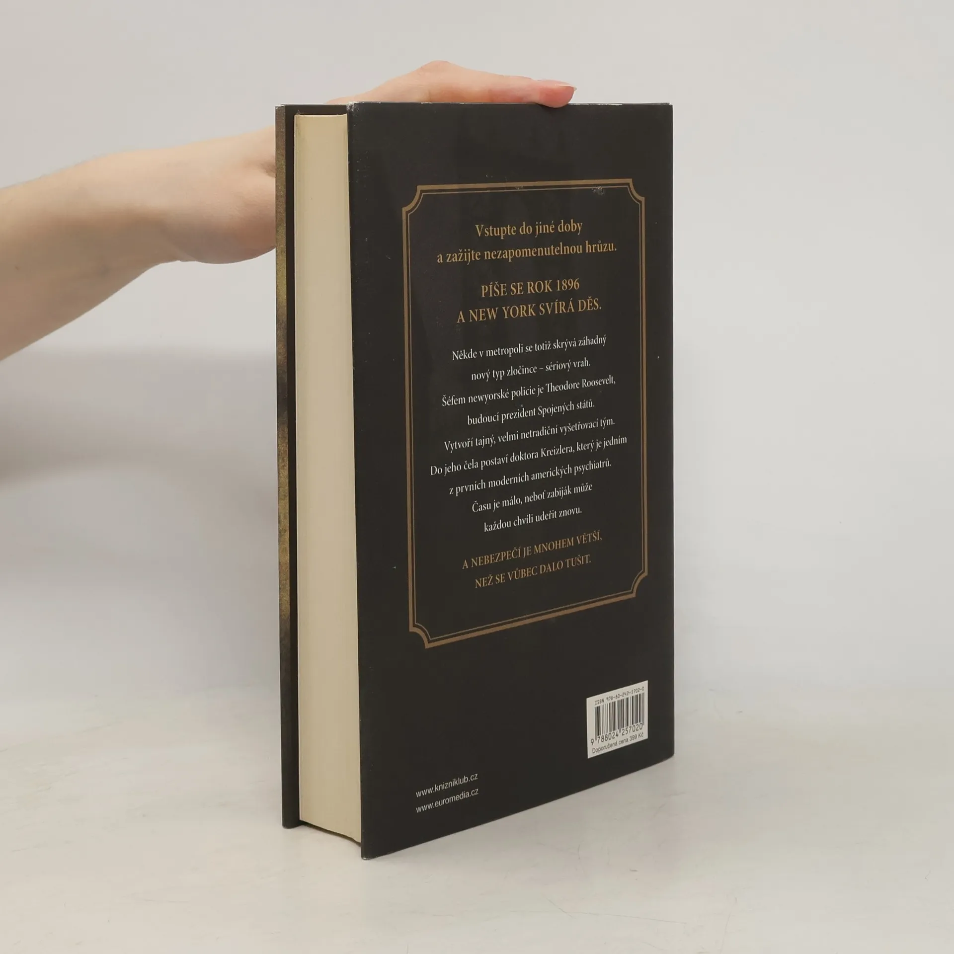 Vstupte do jiné doby a zažijte nezapomenutelnou hrůzu. Píše se rok 1896 a New York svírá děs. Někde v metropoli se totiž skrývá záhadný nový druh zločince – sériový vrah. Šéfem newyorské policie je Theodore Roosevelt, budoucí prezident Spojených států. Vytvoří tajný, velmi netradiční vyšetřovací tým. Do jeho čela postaví doktora Kreizlera, který je jedním z prvních moderních amerických psychiatrů. Času je málo, neboť zabiják může každou chvíli udeřit znovu. A nebezpečí je mnohem větší, než se vůbec dalo tušit.