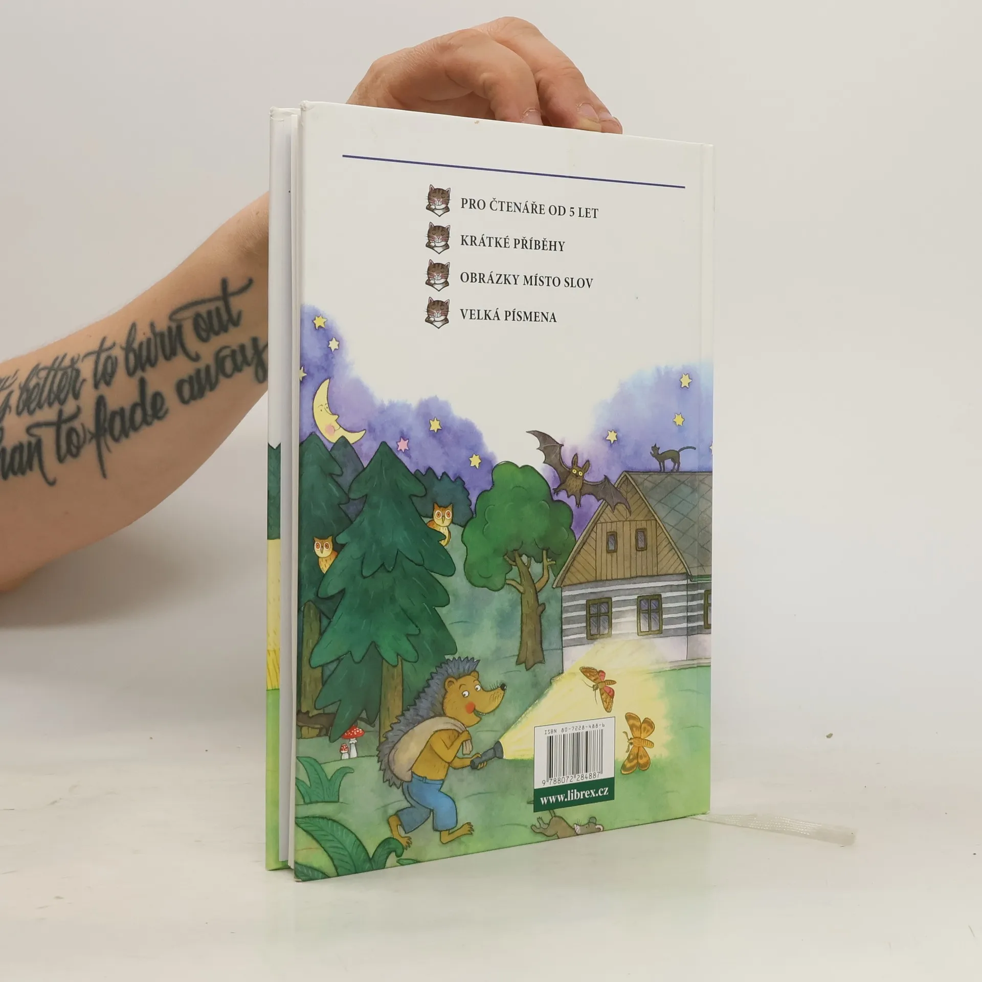Krátké příběhy, ve kterých je část textu nahrazena obrázky. Kniha je určena dětem od 5 let, ale rádi si ji přečtou i menší školáci. V textu některá podstatná jména nebo jejich části nahrazují obrázky a děti si při jejich doplňování mohou pomoci nápovědou z obou knižních předsádek. Velká písmena umožňují snadnější čtení začínajícím čtenářům.
