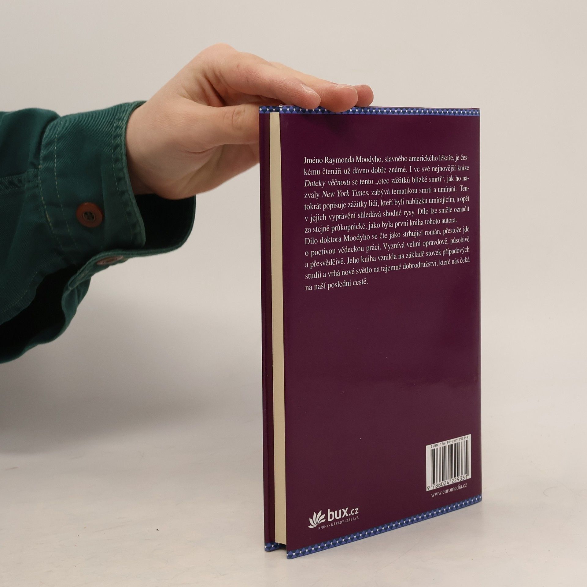 Co se s člověkem děje, když umírá? Je možné, aby tento zážitek sdílel s živými? I ve své nové knize Doteky věčnosti se Raymond Moody zabývá tematikou smrti a umírání a této fascinující otázce dává zcela nový směr. Spolu s P. Perrym totiž zkoumá „zážitky sdílené smrti“, při nichž mohou lidé, kteří jsou v přítomnosti umírajícího, nakrátko nahlédnout do onoho světa. Průkopnické dílo se čte jako strhující román.