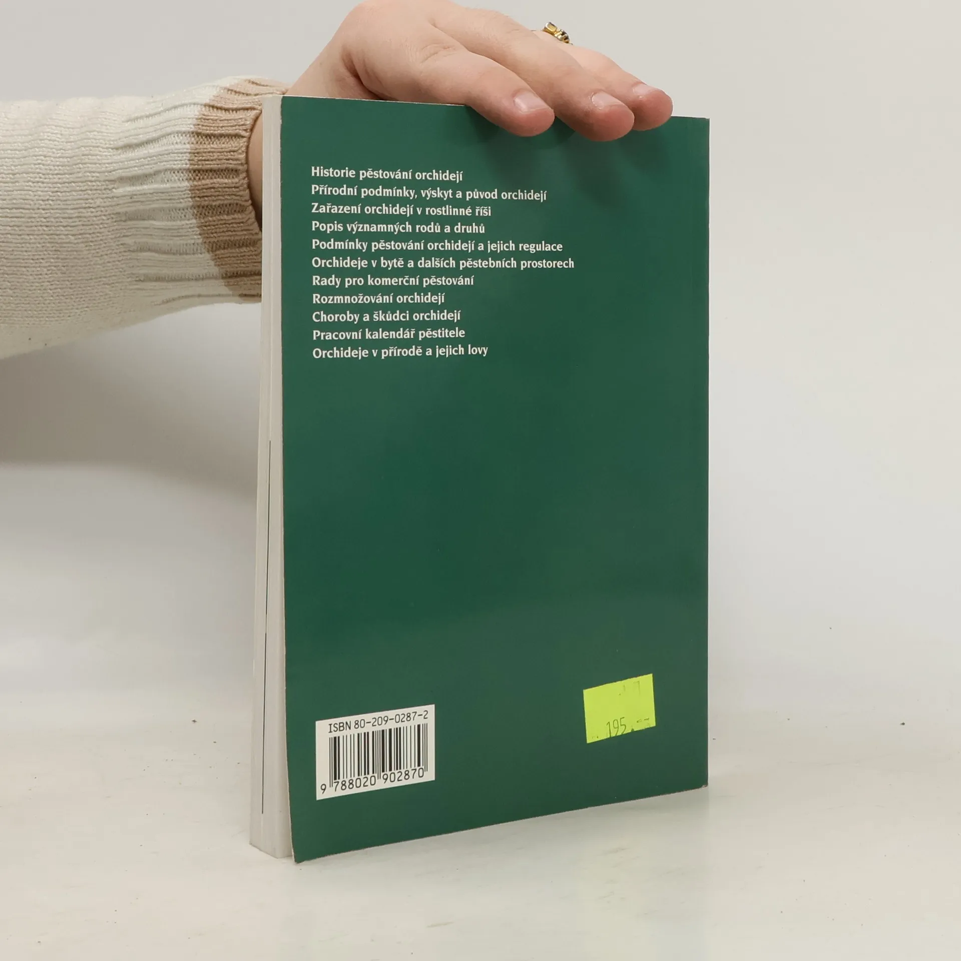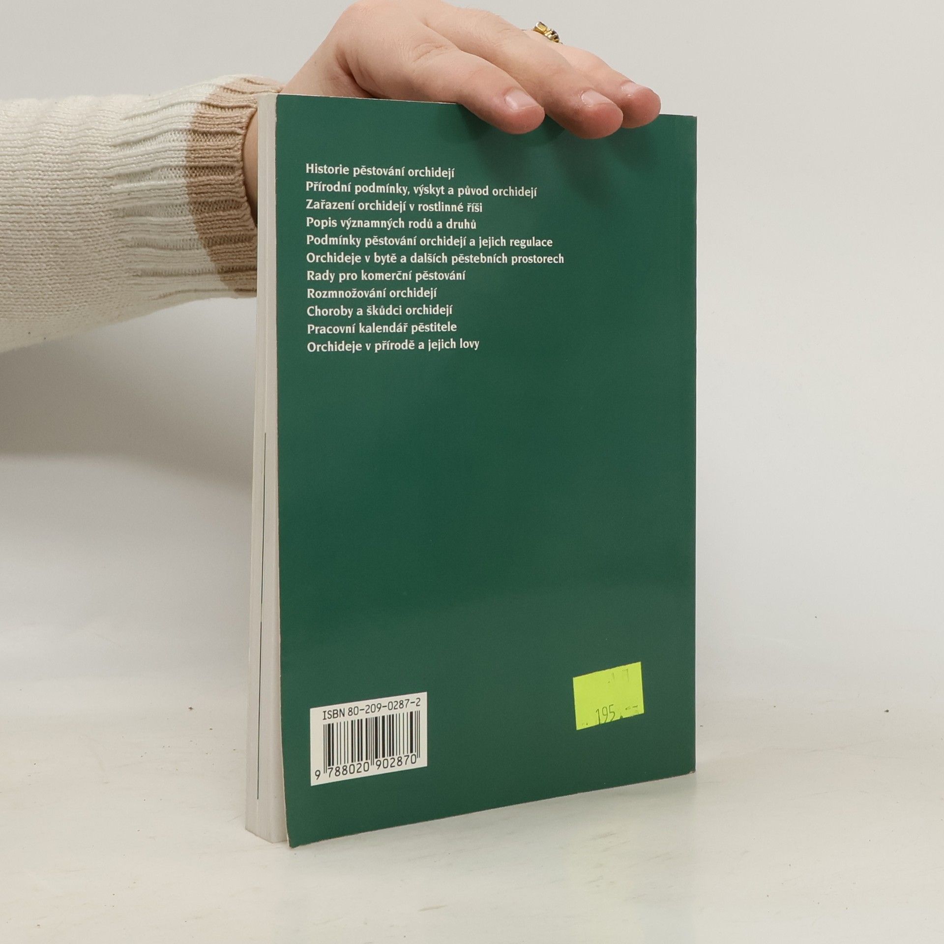 Publikace popisuje odborně populární formou způsoby pěstování orchidejí. Je zde uvedena historie pěstování, výskyt a původ orchidejí, popis rodů a druhů, jejich nároky na prostředí, možnosti pěstování v bytě a ve skleníku i zásady pěstování pro komerční účely.