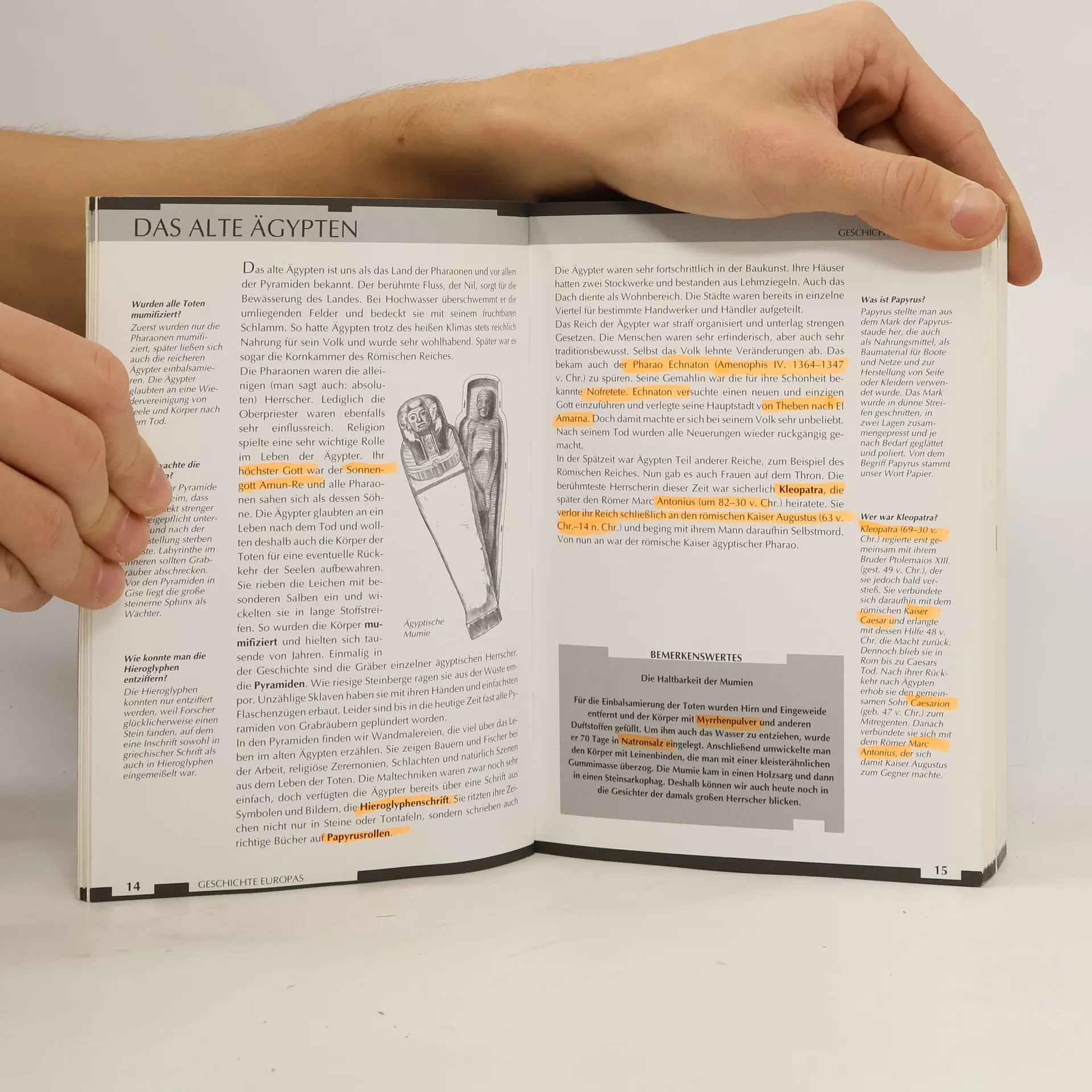 Wissenswertes von allem ein bisschen: Wer sich gerne über die verschiedenen Wissensgebiete einen Überblick verschaffen möchte, ist mit diesem Buch sehr gut bedient, denn es gibt knapp das Wichtigste wieder, was zur sogenannten Allgemeinbildung gehört. Wer wirklich Bescheid wissen möchte, kommt nicht darum herum, sich an andere Bücher zu halten. Wenn zum Beispiel zum Islam genau eine Doppelseite zur Verfügung steht, so kann das nur oberflächlich abgehandelt sein. Geschichte, Philosophie, Mythologie, Kunst, Naturwissenschaften etc. werden in kleine Unterkapitel aufgeteilt und abgehandelt. Wenn die Erkenntnis daraus resultiert, wenigstens "zu wissen, was man nicht weiss", ist das ja auch schön. Das Buch gibt jedoch einen guten Überblick über die Kulturgeschichte des Menschen und über viele wissenschaftliche Erkenntnisse. Ein Register gibt einen schnellen Zugang zu den verschiedenen Themen. Ab 12 Jahren, möglich, Benno Graber.