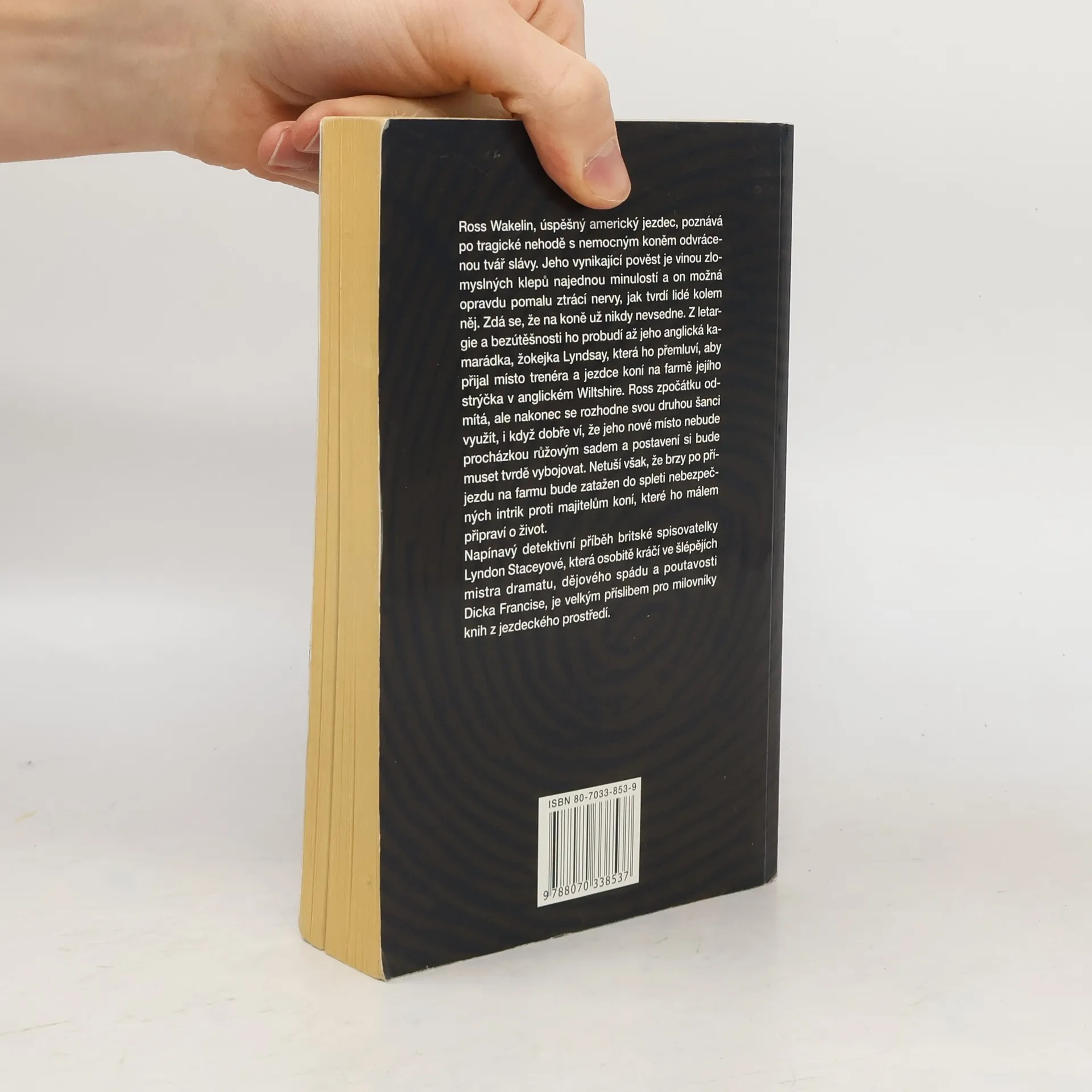 Napínaví detektivní příběh britské spisovatelky Lyndon Staceyové, která osobitě kráčí ve šlépějích mistra dramatu, dějového spádu a poutavosti Dicka Francise, je velkým příslibem pro milovníky knih z jezdeckého prostředí. Ross Wakelin, úspěšný americký jezdec, poznává po tragické nehodě s nemocným koněm odvrácenou tvář slávy.
