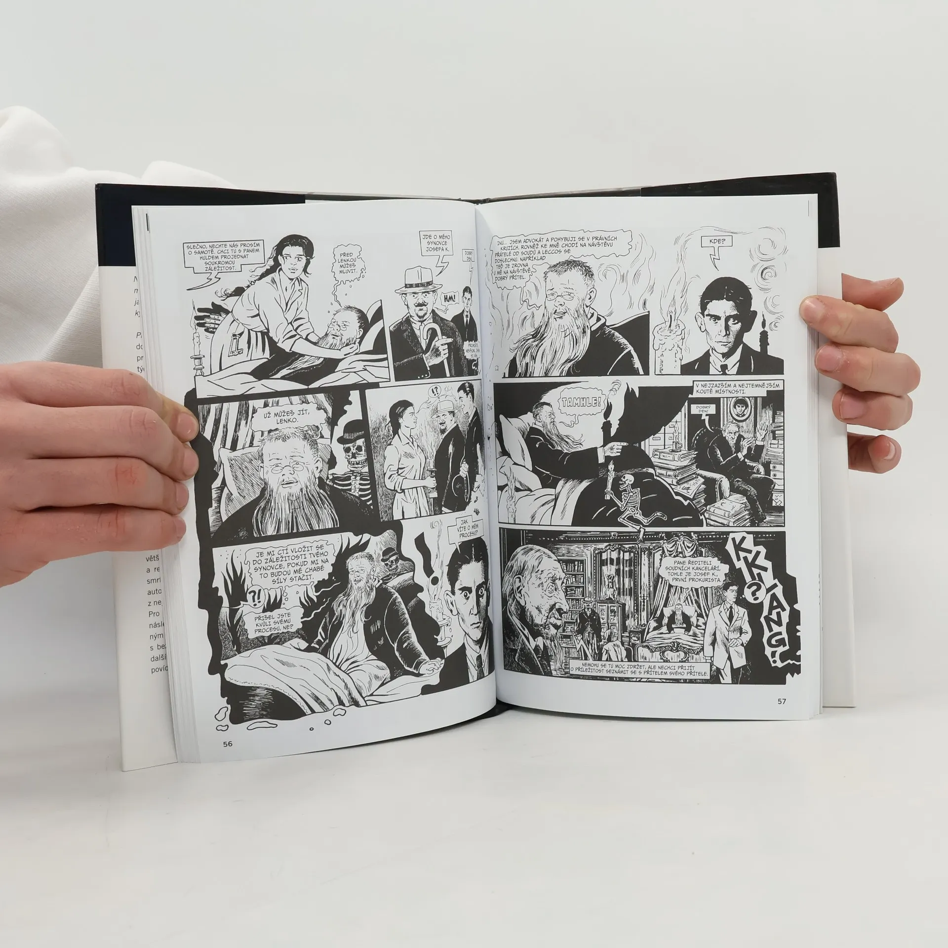 Adaptace Chantal Montellierová a David Mairowitz. Proces, slavný Kafkův román skvěle adaptovaný do komiksové podoby, je ponurým příběhem prokuristy Josefa K., kterému v den jeho třicátých narozenin vniknou do bytu dva neznámí muži a zatknou ho pro neznámé provinění. Ze začátku pokládá celou věc za nedorozumění, ale postupně poznává zkorumpovanost a nepostižitelnost soudu, jehož případy uzavírá pouze smrt obžalovaného. Kafkův portrét byrokratického soukolí, které drtí životy svých občanů, je dnes bohužel stejně aktuální jako v době svého zrodu. Jednomu nakonec nezbývá než smířit s poměry. Hlavně nevzbudit pozornost! Držet jazyk za zuby, i kdyby to člověku bylo hodně proti srsti! Pochopit, že ten velký soudní organismus setrvává věčně ve stavu pružné rovnováhy.