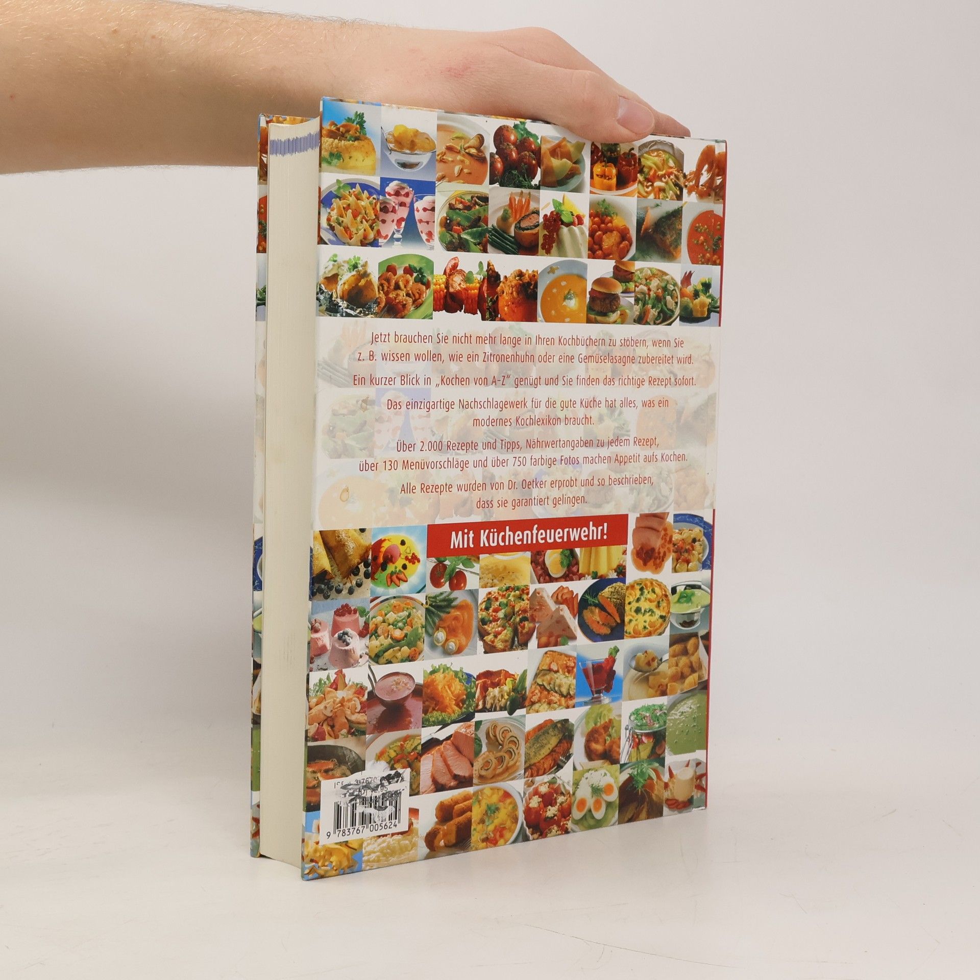 Die neue Kochbuchsensation von Dr. Oetker. Jetzt muss man nicht mehr lange suchen, wenn man wissen will, was man eigetnlich alles z. B. mit Zucchini machen kann, wie man ein Schweinefilet zubereitet oder wie man einen Pichelsteiner kocht. Kein Problem - denn jetzt gibt es Kochen von A-Z, das einzigartige Nachschlagewerk mit über 1.111 gelingsicheren Rezepten und Rezeptideen und über 750 tollen, farbigen Rezeptfotos. 544 Seiten dick, 19 x 26 cm groß, im strapazierfähigen Hardcover zum Wahnsinnspreis von nur 12,95 Euro. Natürlich wurden alle Rezepte von Dr. Oetker getestet und so beschrieben, dass sie garantiert gelingen. Und wenn man einmal vergessen aht, welche Seite der Alufolien beim Braten nach innen gehört, oder wie man eine geronnene Mayonnaise retten kann, dann genügt ein Blick in den Sonderteil „Küchenfeuerwehr“, in dem wir zusätzlich noch über 600 Tipps verraten, die das Kochen leichter machen