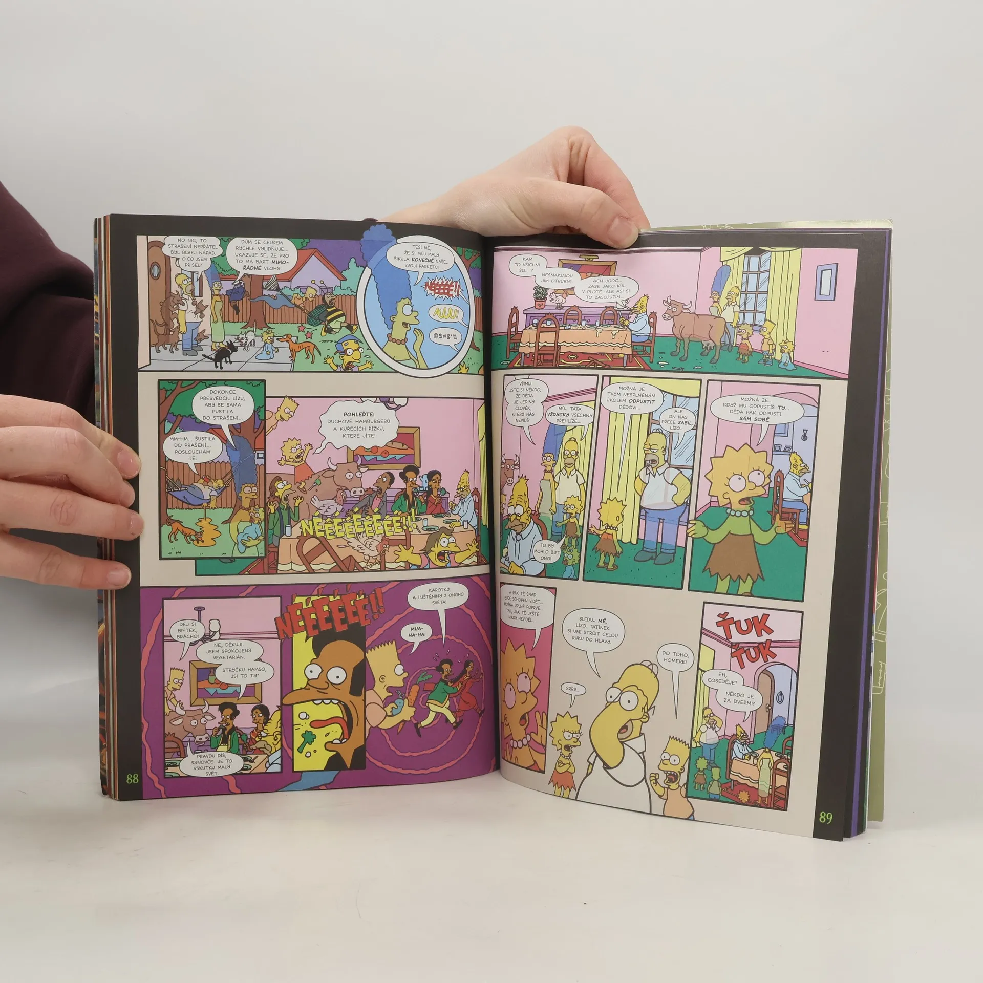 Matt Groening, vymrsknul magickou melanž, v níž najdete šílená šaškovská auta, zakleté cereálie, strašidelné špitály, závěti psané na servítkách, společenstva spjatá prstenem, upíry v sousedství a kostýmované komiksáky. Přihoďte k tomu lahev amontillada plnou pomsty a játra-rvoucí historku ze staré, dobré, krvavé Anglie a získáte příjemně plesnivý a zimničně zábavný svazek plný hrubozrnné hrůzy a halloweenské hlíny se Simpsonovými.
