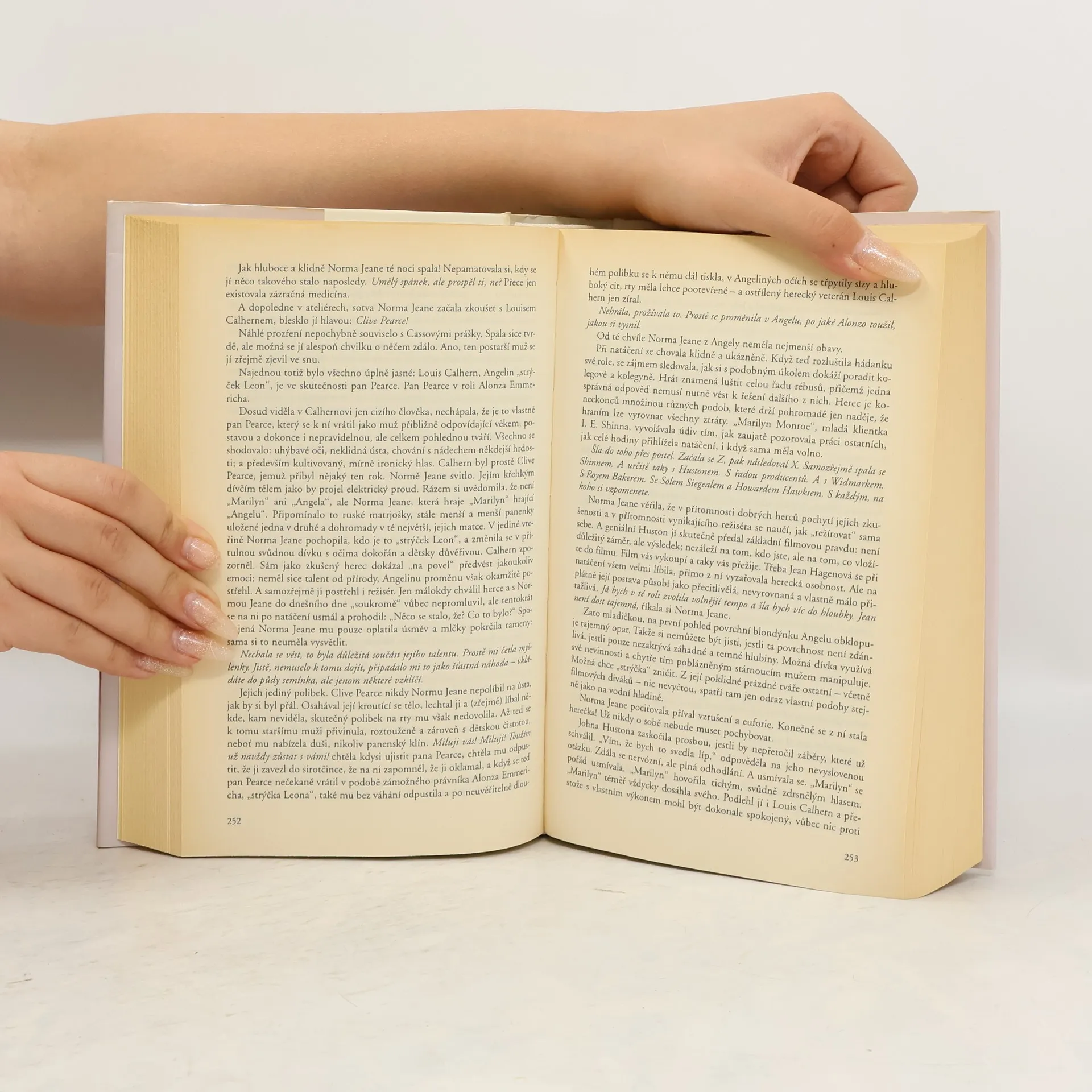 Stylizovaný fiktivní životopis americké filmové hvězdy Marilyn Monroe. Na 700 stranách rozsáhlého románu postupně poznáváme proslulou hollywoodskou star: její smutné dětství a dospívání, budování kariéry i pobyt na vrcholu slávy, nejednoznačné vztahy k vlivným mužům. Kniha v žádném případě není klasickým životopisem, biografická fakta jsou upravena nebo jen naznačena, některé význačné osobnosti nejsou uvedeny plným jménem. Pozornost je soustředěna především na psychologii nevyrovnané a přecitlivělé Normy Jeane, pozdější Marilyn, na její osobní pocity a pohnutý osud. Autorka vytvořila osobitý psychologicko-poetický portrét vnitřního světa oslnivé blondýnky, klesající pod tíhou vlastního mýtu a nemilosrdně zraňované svou psychickou labilitou i nepochopením okolí.