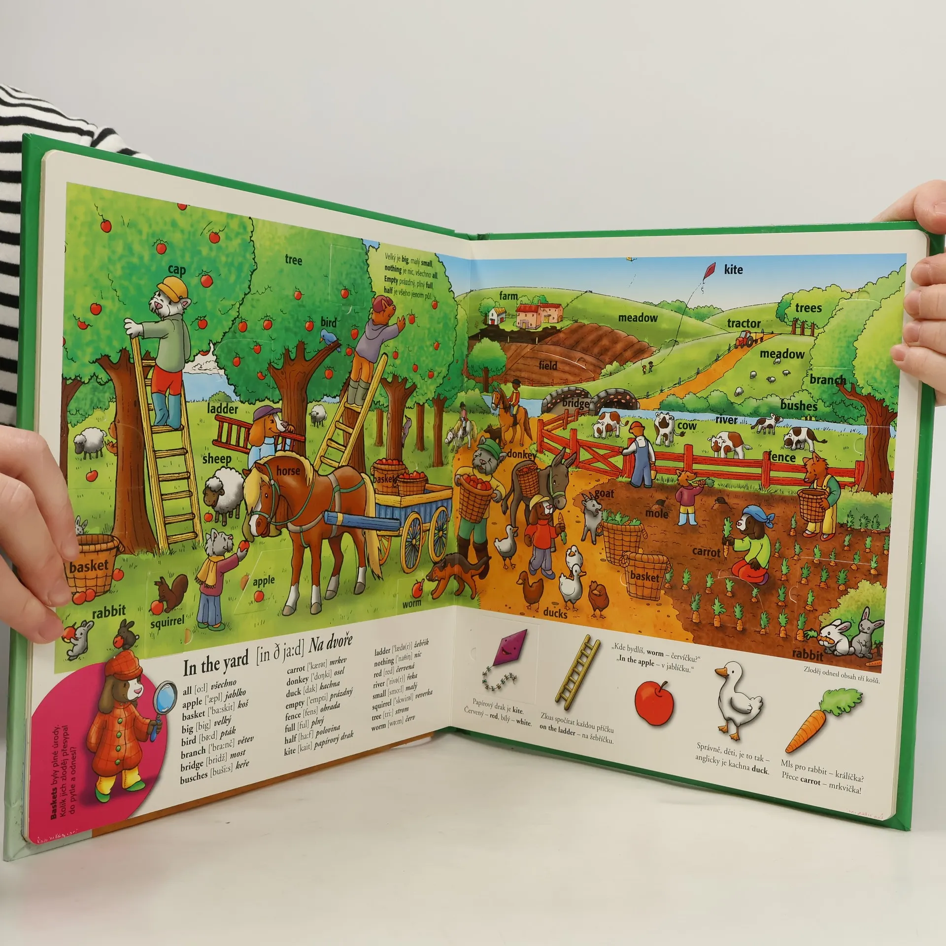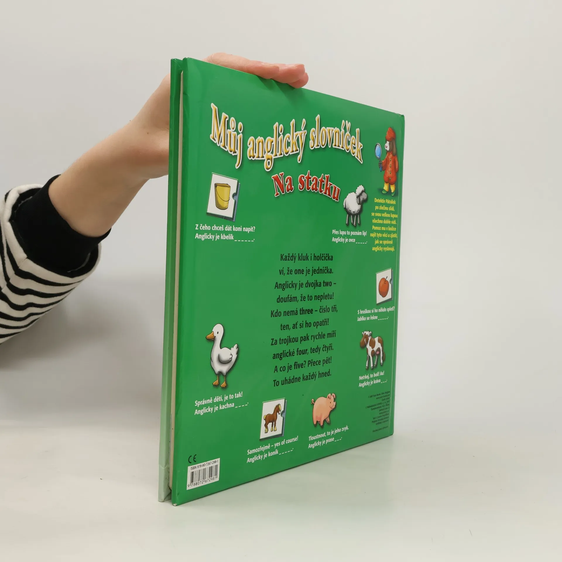 Kdo je chytrý velice, ví, že hen je slepice. Tento anglický obrázkový slovník přinese vám i vašim dětem spoustu zábavy i poučení. Aby si děti lépe zapamatovaly anglická slovíčka, je v knížce mnoho jednoduchých veršů, spousta krásných obrázků a více než 100 okének s překvapením. Navíc děti knížkou provází detektiv Pátralek, který pro ně má připravené přímo detektivní úkoly. Na zadní stránce jsou pak hádanky, které mají ověřit, co si děti zapamatovaly.