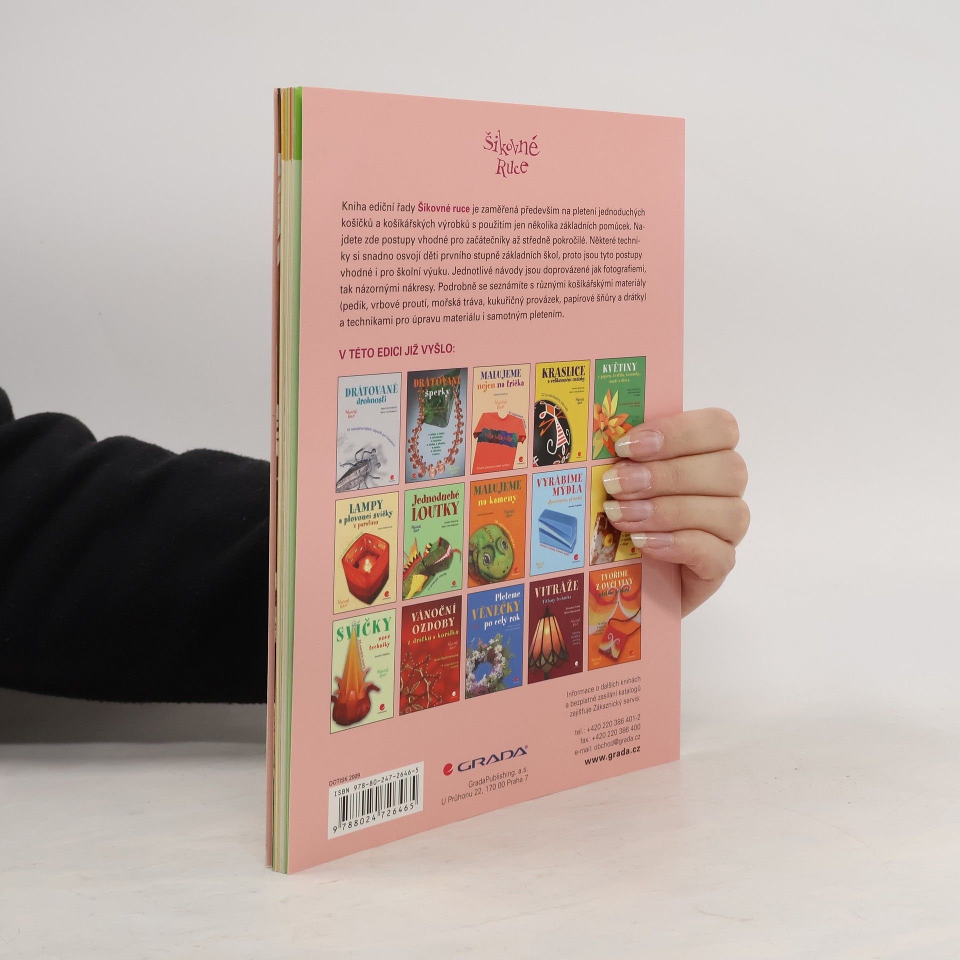 Kniha ediční řady Šikovné ruce je zaměřená především na pletení jednoduchých košíčků a košíkářských výrobků s použitím jen několika základních pomůcek. Najdete zde postupy vhodné pro začátečníky až středně pokročilé. Některé techniky si snadno osvojí děti prvního stupně základních škol, proto jsou tyto postupy vhodné i pro školní výuku. Jednotlivé návody jsou doprovázené jak fotografiemi, tak názornými nákresy. Podrobně se seznámíte s různými košíkářskými materiály (pedik, vrbové proutí, mořská tráva, kukuřičný provázek, papírové šňůry a drátky), způsoby úpravy materiálu jako je barvení i základními technikami samotného pletení.
