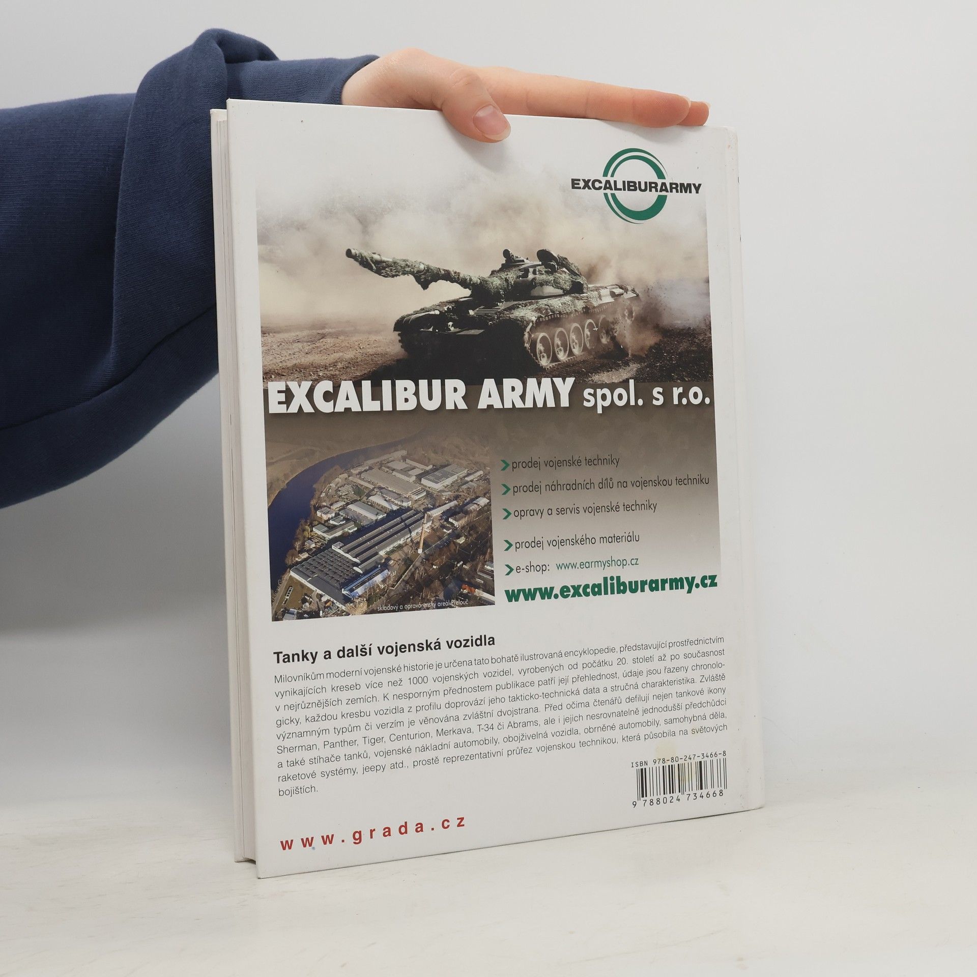 Milovníkům moderní vojenské historie je určena tato bohatě ilustrovaná encyklopedie, představující prostřednictvím vynikajících kreseb více než 1000 vojenských vozidel, vyrobených v nejrůznějších zemích od počátku 20. století až po současnost. K nesporným přednostem publikace patří její přehlednost, údaje jsou řazeny chronologicky, každou kresbu vozidla z profilu doprovází jeho takticko-technická data a stručná charakteristika. Zvláště významným typům či verzím je věnována zvláštní dvojstrana. Před očima čtenáře defilují nejen tankové ikony Sherman, Panther, Tiger, Centurion, Merkava, T-34 či Abrams, ale i jejich nesrovnatelně jednodušší předchůdci a také stíhače tanků, nákladní automobily, obojživelná vozidla, obrněné automobily, samohybná děla, raketové systémy, jeepy atd., prostě reprezentativní průřez vojenskou technikou, která působila na světových bojištích.