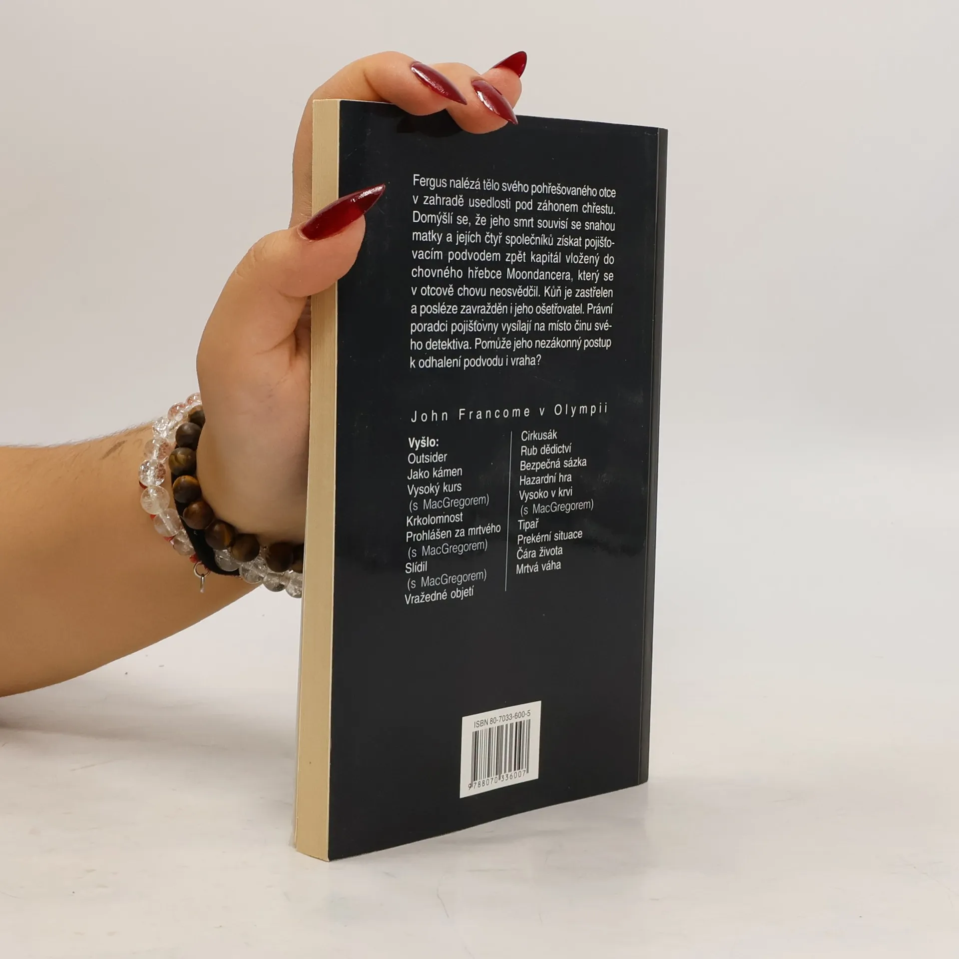 Fergus nalézá tělo svého pohřešovaného otce v zahradě usedlosti pod záhonem chřestu. Domýšlí se, že jeho smrt souvisí se snahou matky a jejích čtyř společníků získat pojišťovacím podvodem zpět kapitál vložený do chovného hřebce Moondancera, který se v otcově chovu neosvědčil. Kůň je zastřelen a posléze je zavražděn i jeho ošetřovatel. Pomůže nezákonný postup vyšetřovatele pojišťovny k odhalení podvodu i vraha?