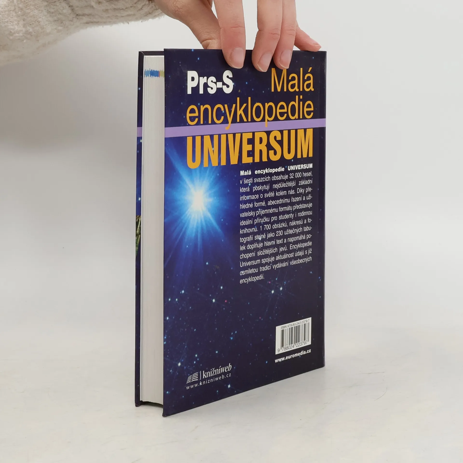 Prs - S Malá encyklopedie Universum v šesti svazcích obsahuje 32 000 hesel, která poskytují nejdůležitější základní informace o světě kolem nás. Díky přehledné formě, abecednímu řazení a uživatelsky příjemnému formátu představuje ideální příručku pro studenty i rodinnou knihovnu. 1 700 obrázků, nákresů a fotografií stejně jako 230 užitečných tabulek doplňuje hlavní text a napomáhá pochopení složitějších jevů. Encyklopedie Universum spojuje aktuálnost údajů s již osmiletou tradicí vydávání všeobecných encyklopedií.