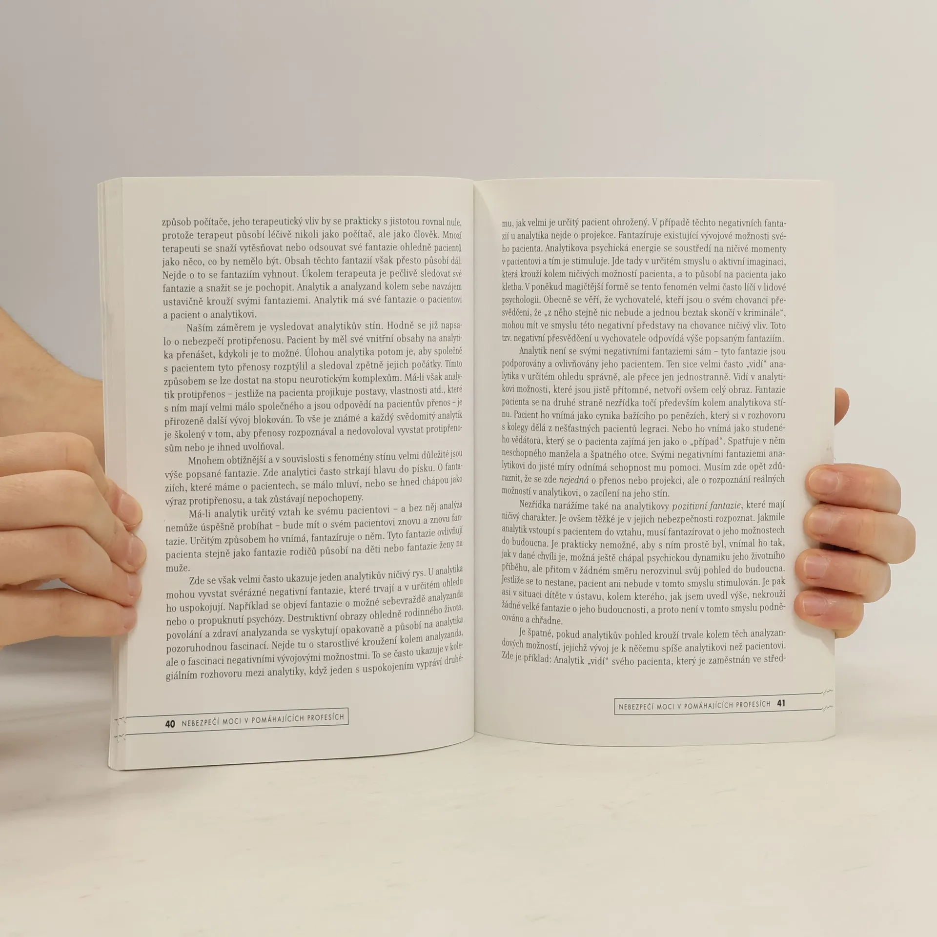Zkušený praktik na poli psychoterapie a poradenství se zamýšlí nad stinnými aspekty pomáhajících profesí, především nad tématem moci. Zabývá se především motivací, která vede člověka k tomu, aby vykonával obtížnou pomáhající profesi, jeho pozornost je zaměřena také na nevyvážený vztah mezi pomáhajícím a klientem, jenž může být pro pomáhajícího úskalím, a na další rizika, která v sobě pomáhající profese skrývají. Uvažuje rovněž nad preventivními opatřeními, jakými jsou pro člověka v pomáhající profesi vlastní sebezkušenost, supervize nebo užitečnost obyčejných vyrovnaných vztahů, které člověka sesadí z jeho vyvýšené pomáhající pozice. Kniha zaujme zájemce o psychologii, psychoterapii a tematiku pomáhajících profesí.