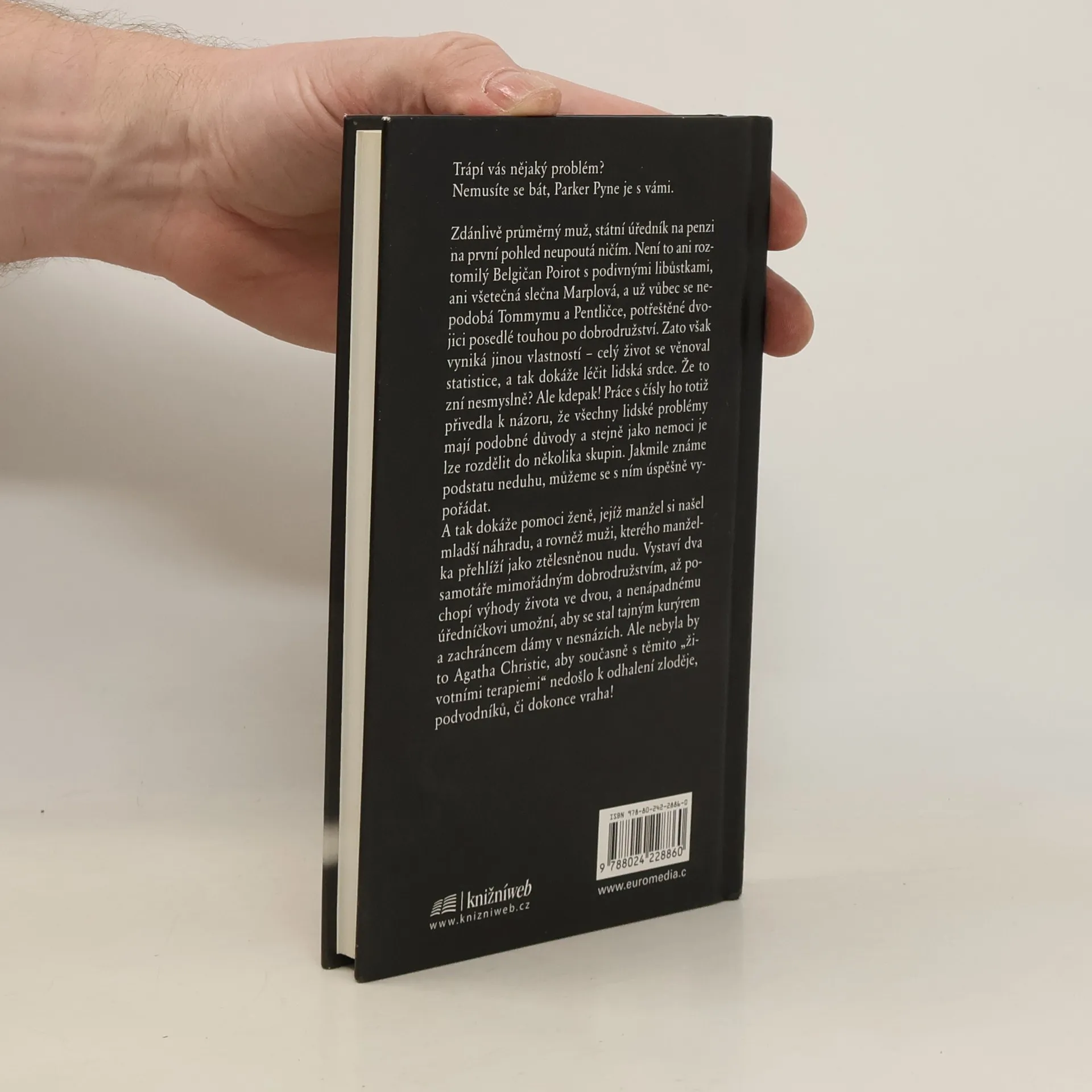 Trápí vás nějaký problém? Nemusíte se bát, Parker Pyne je s vámi… Státní úředník na penzi na první pohled sice nijak zvlášť neupoutá, něčím ale přece vyniká: celý život se věnoval statistice, a tak dokáže léčit lidská srdce. Nesmysl? Kdepak! Práce s čísly ho přivedla k názoru, že – podobně jako s nemocí – jakmile známe podstatu neduhu, lze se s ním vypořádat. A tak dokáže pomoci ženě, jejíž manžel si našel mladší náhradu; muži, kterého manželka přehlíží; vystaví dva samotáře dobrodružstvím, až pochopí výhody života ve dvou; umožní nenápadnému úředníčkovi, aby se stal tajným kurýrem a zachráncem dámy v nesnázích... Ale nebyla by to Agatha Christie, kdyby také nedošlo k odhalení zloděje, podvodníků, či dokonce vraha! 2. vydání