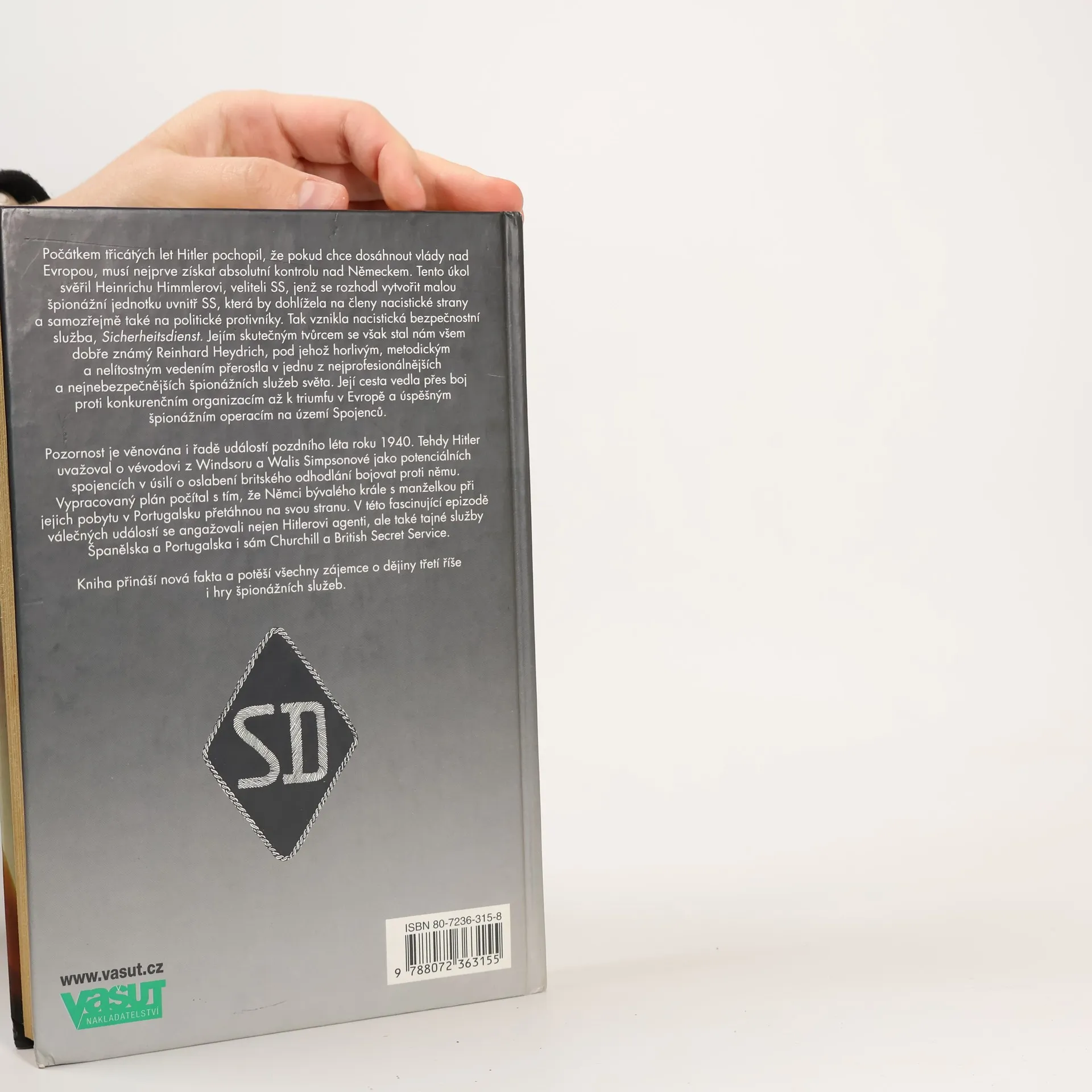 Počátkem třicátých let Hitler pochopil, že pokud chce dosáhnout vlády nad Evropou, musí nejprve získat absolutní kontrolu nad Německem. Tento úkol svěřil Heinrichu Himmlerovi, veliteli SS, jenž se rozhodl vytvořit malou špionážní jednotku uvnitř SS, která by dohlížela na členy nacistické strany a samozřejmě také na politické protivníky. Tak vznikla nacistická bezpečnostní služba, Sicherheitsdienst. Jejím skutečným tvůrcem se však stal nám všem dobře známý Reinhard Heydrich, pod jehož horlivým, metodickým a nelítostným vedením přerostla v jednu z nejprofesionálnějších a nejnebezpečnějších špionážních služeb světa. Její cesta vedla přes boj proti konkurenčním organizacím až k triumfu v Evropě a úspěšným špionážním operacím na území Spojenců. Pozornost je věnována i řadě událostí pozdního léta roku 1940. Tehdy Hitler uvažoval o vévodovi z Windsoru a Walis Simpsonové jako potenciálních spojencích v úsilí o oslabení britského odhodlání bojovat proti němu. Vypracovaný plán počítal s tím, že Němci bývalého krále s manželkou při jejich pobytu v Portugalsku přetáhnou na svou stranu. V této fascinující epizodě válečných událostí se angažovali nejen Hitlerovi agenti, ale také tajné služby Španělska a Portugalska i sám Churchill a British Secret Service. Kniha přináší nová fakta a potěší všechny zájemce o dějiny třetí říše i hry špionážních služeb.