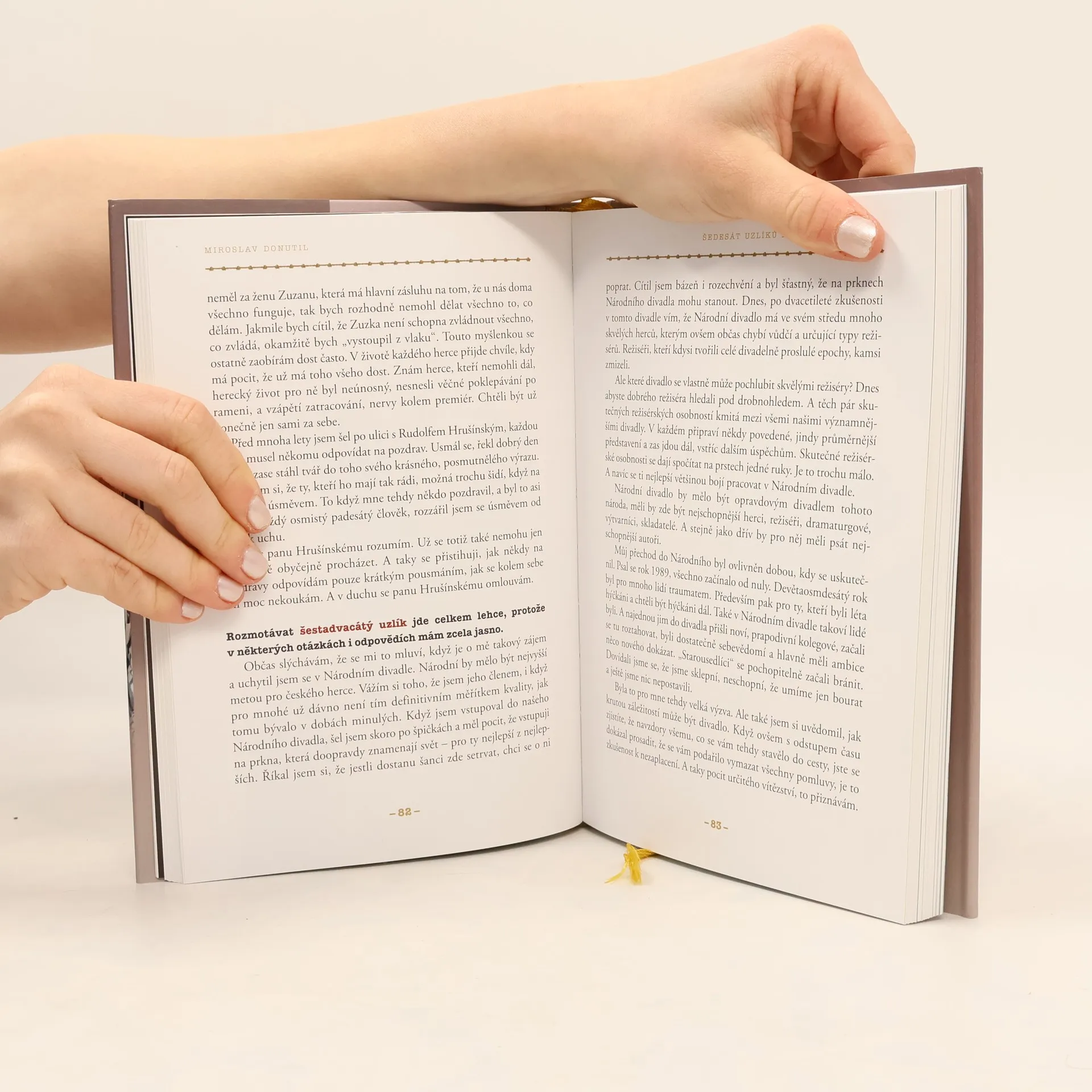 Život je jako hra, nezáleží ani tak na tom, jak dlouho trvalo představení, ale jak dobře bylo zahráno. To už kdysi dávno vymyslel Seneca. Miroslav Donutil má štěstí. Hraní a život se mu prolínají a když se rozhodne napsat o tom knížku, rozhodně má o čem psát. A jedno je jisté. S uzlíky, které ve svém životě rozmotává, se potýkáme každý z nás. O to zajímavější konfrontace nás při čtení nové knihy Miroslava Donutila čeká.
