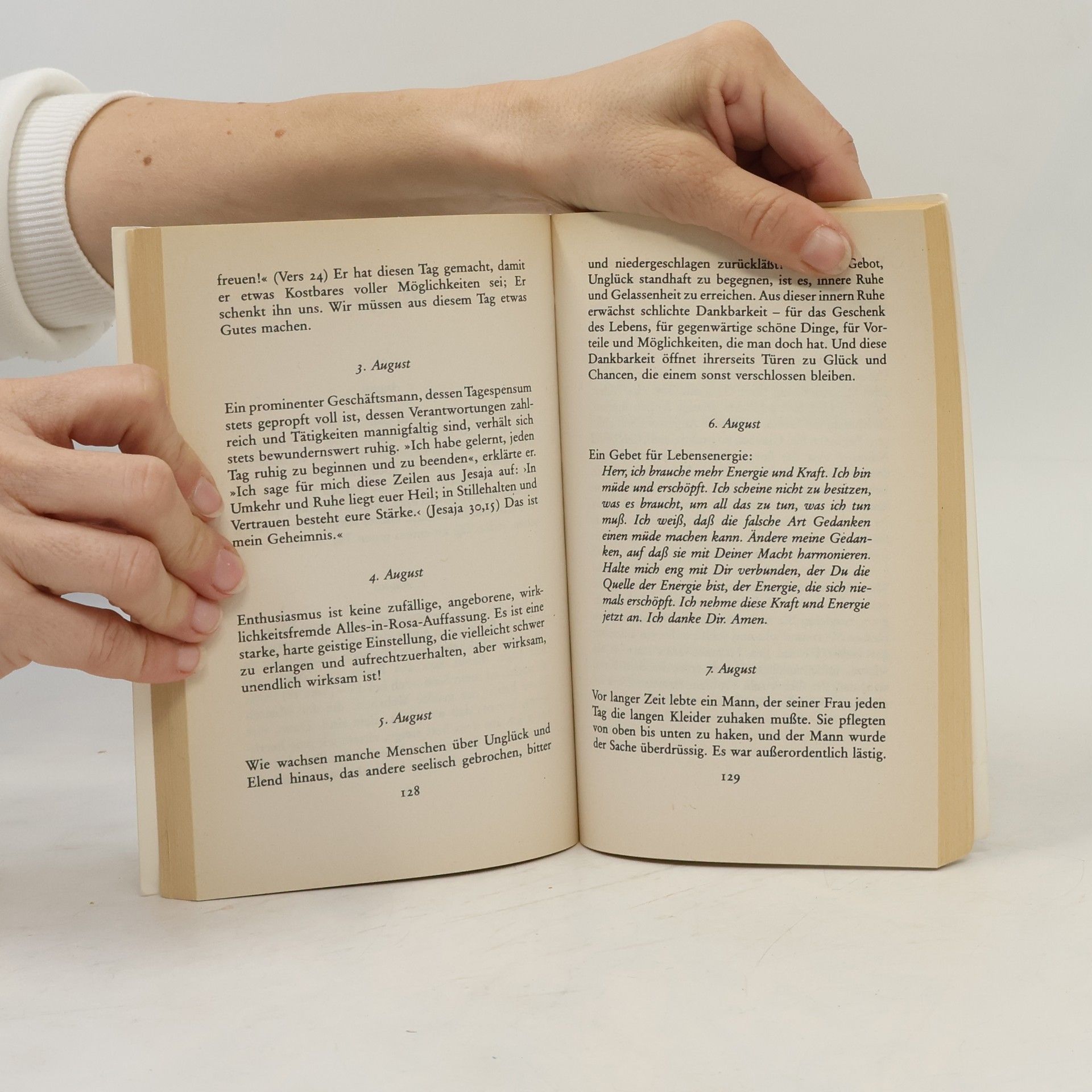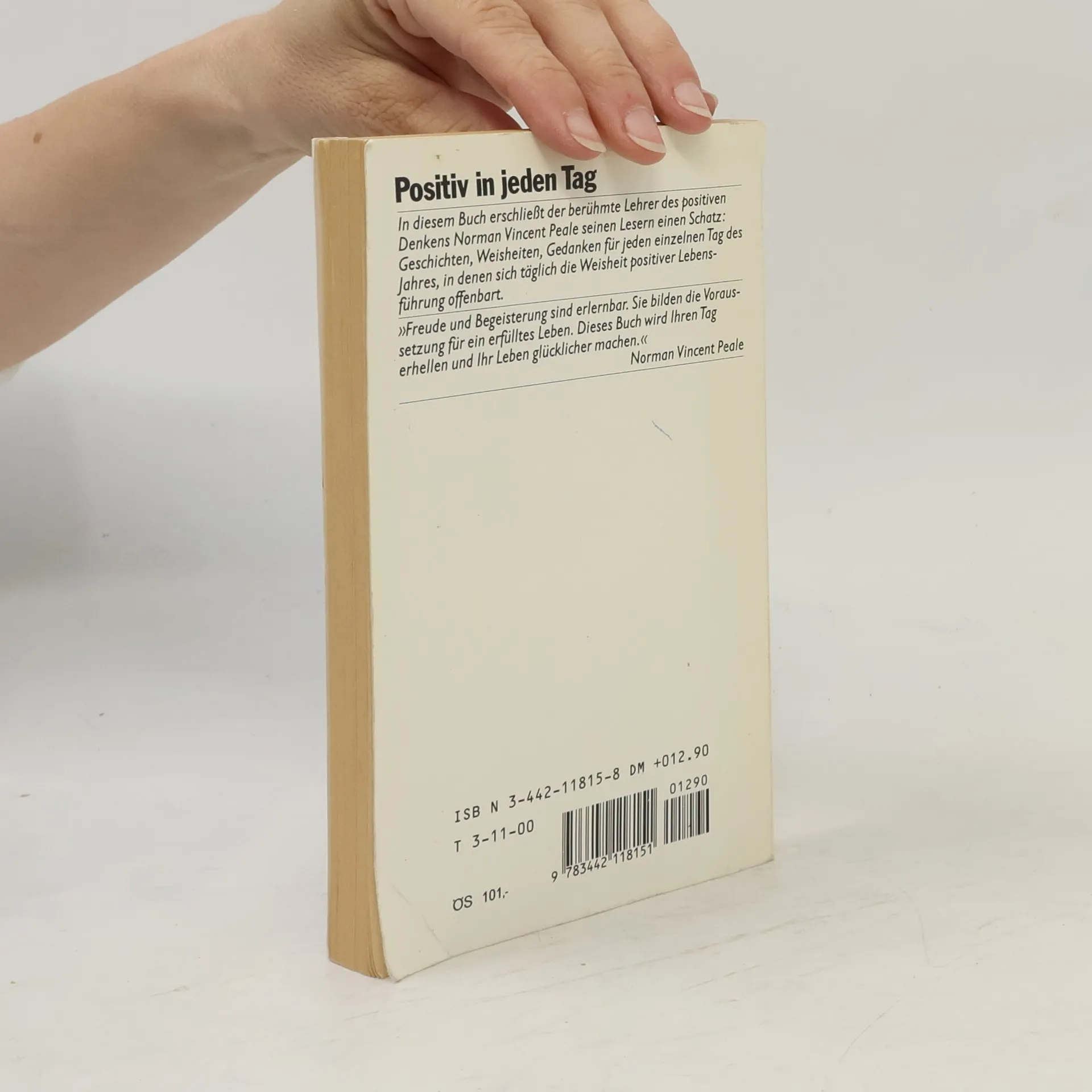 Für uns Menschen gibt es kein grösseres Glück, als mit uns selbst und mit unserer Umwelt in Frieden zu leben, unerschrocken und frei von Angst. Jeder kann seines eigenen Glückes Schmied werden – höchstens fünf Minuten kostet Sie dieses Buch täglich, ein ganzes Jahr lang. Fünf Minuten, die sich lohnen.Peale legt in diesem Buch 366 ermunternde und positive Gedanken vor – einer für jeden Tag des Jahres –, die helfen sollen, jeden Tag zu einem guten Tag zu machen.