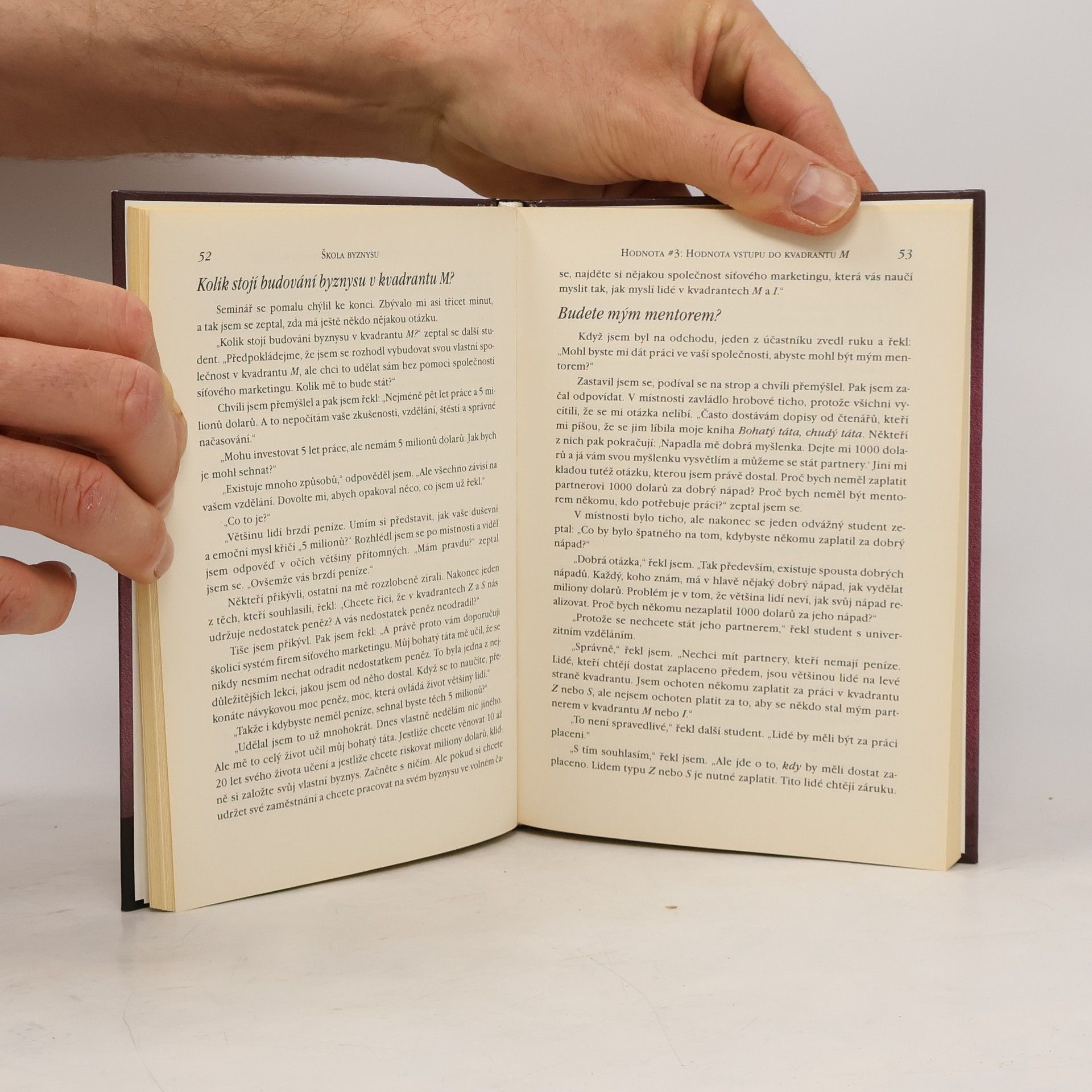 Robert Kiyosaki je světově uznávaný učitel v oboru financí a jeho kniha je označována za "výchozí bod pro každého, kdo chce získat kontrolu nad svou finanční budoucností". Autor přisuzuje svůj úspěch síťovému marketingu. Ačkoli nepropaguje žádnou konkrétní organizaci síťového marketingu, uvědomuje si cenu příležitostí, jež tyto organizace nabízejí, a zdůrazňuje jejich hodnotu v této knize. Síťový marketing nabízí vypracovaný obchodní systém každému, kdo chce získat kontrolu nad svou finanční budoucností. (pro lidi, kteří rádi pomáhají lidem : osm skrytých hodnot síťového marketingu, spojených s vyděláváním peněz)