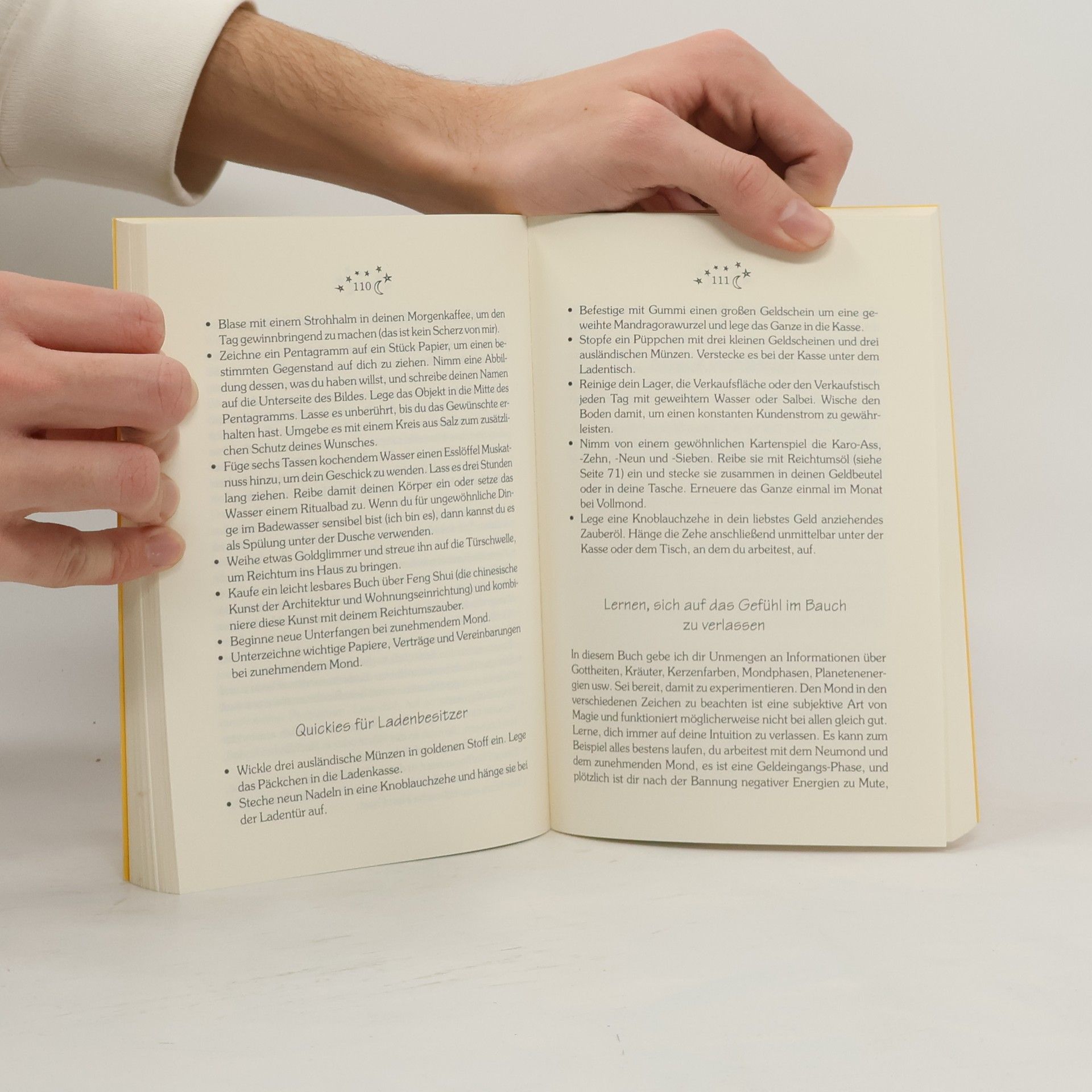 Neigen Sie zu leichtfertigen Ausgaben? Sind sie ständig pleite und quälen sich immer nur von einem Zahltag zum anderen? Brauchen Sie zusätzliches Gelf für ein größeres Projekt? Oder möchten Sie einfach nur mehr Wohlstand genießen? Silver RavenWolf zeigt mit viel Esprit, wirksamen Zaubersprüchen und magischen Ritualen den Weg zu finanziellem Erfolg. Ziel ist es, nicht aussschließlich durch Arbeit zu Reichtum zu gelangen, sondern den Reichtum für sich arbeiten zu lassen. Mit ein bisschen Glück wird der Rubel wieder rollen und Sie haben endlich Zeit zum Leben!