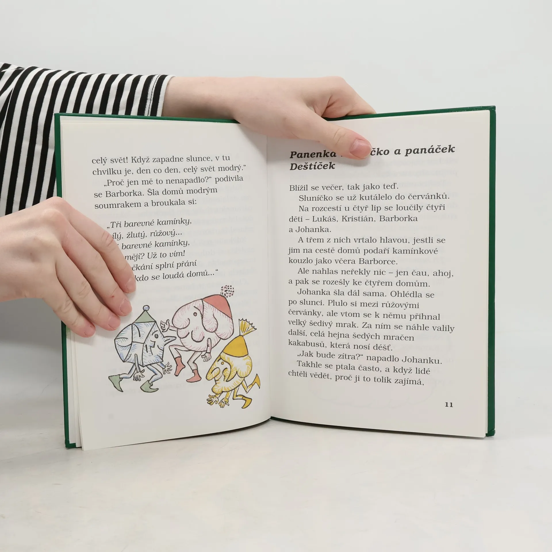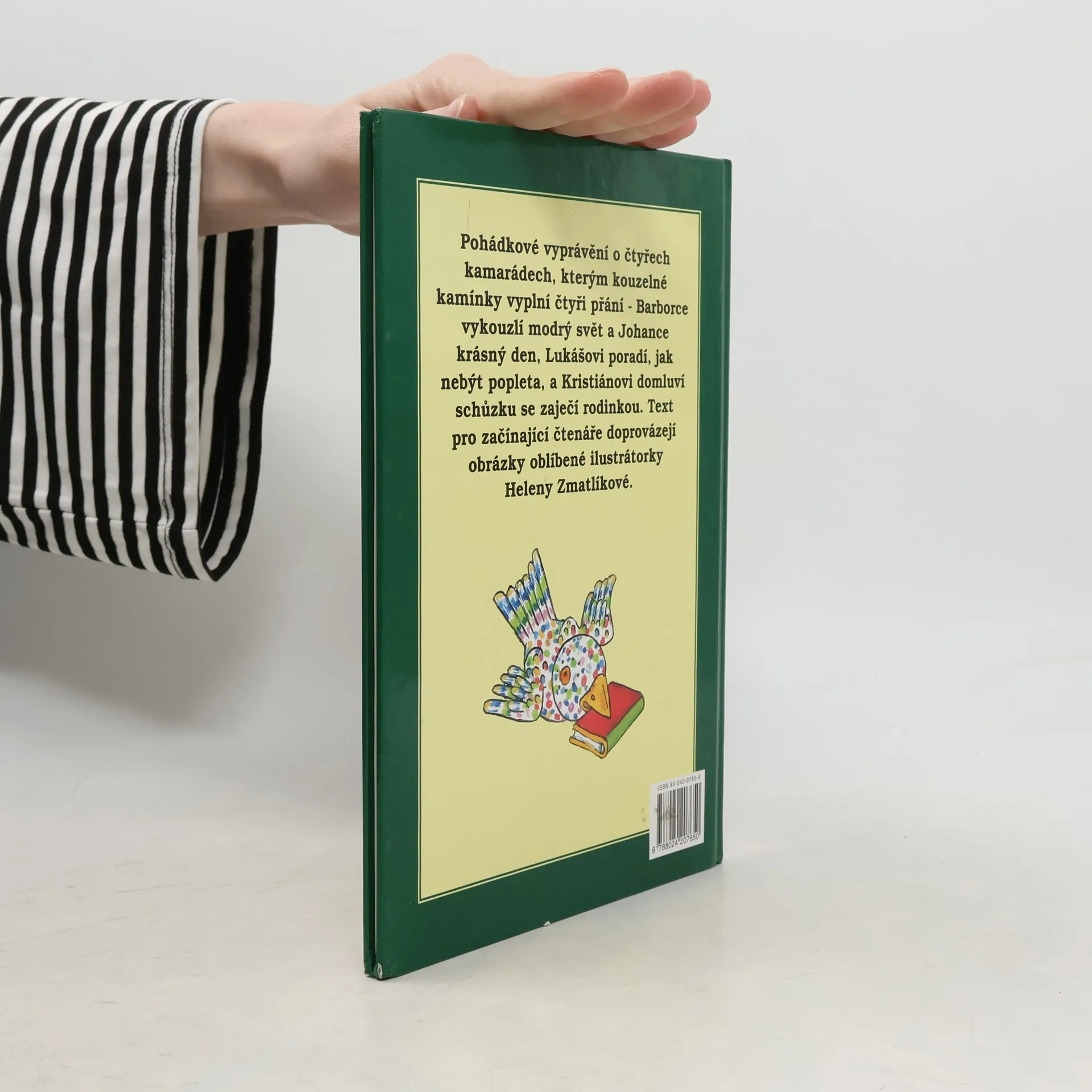 Pohádkové vyprávění o čtyřech kamarádech, kterým kouzelné kamínky vyplní čtyři přání - Barborce vykouzlí modrý svět a Johance krásný den, Lukášovi poradí, jak nebýt popleta, a Kristiánovi domluví schůzku se zaječí rodinkou. Text pro začínající čtenáře doprovázejí obrázky oblíbené ilustrátorky Heleny Zmatlíkové.