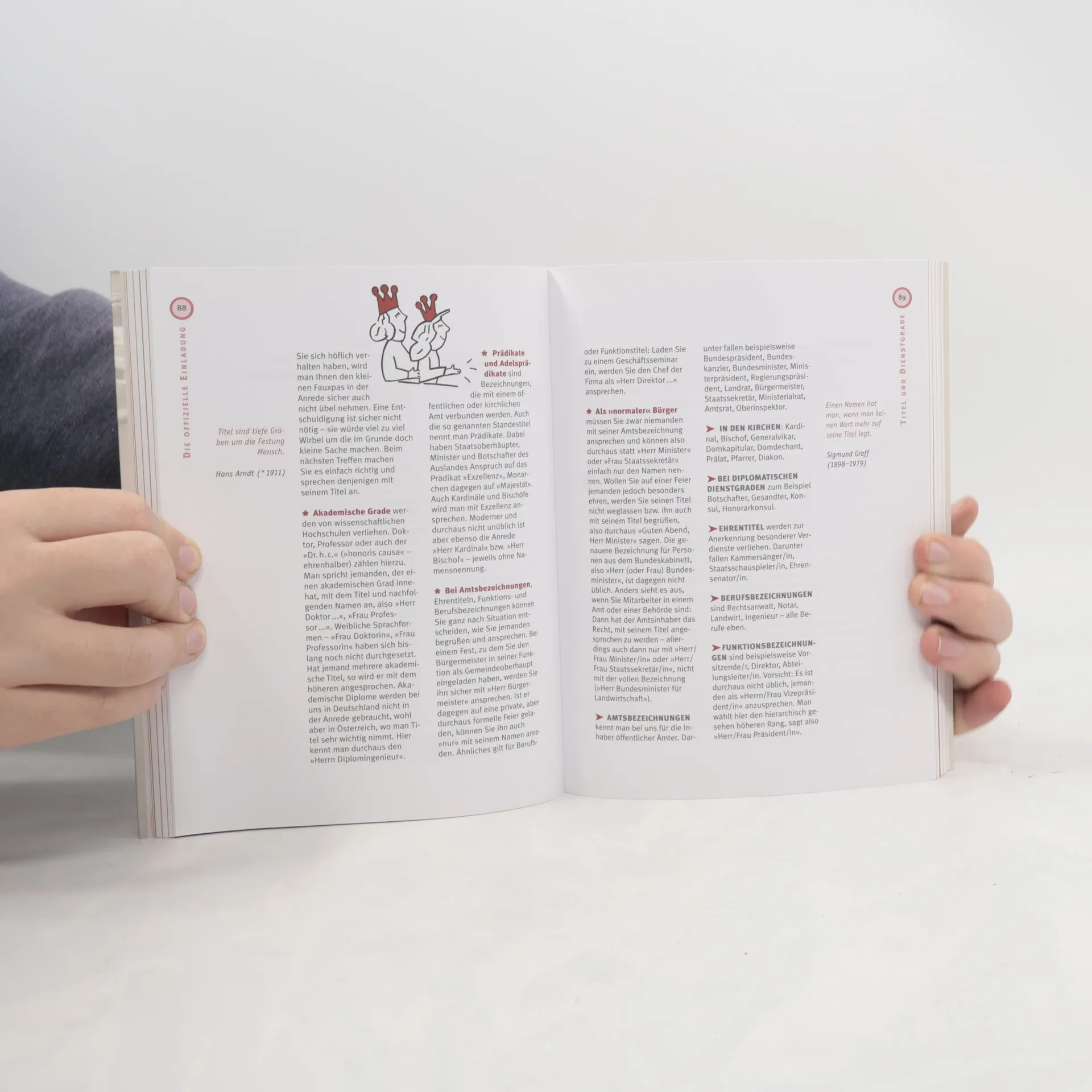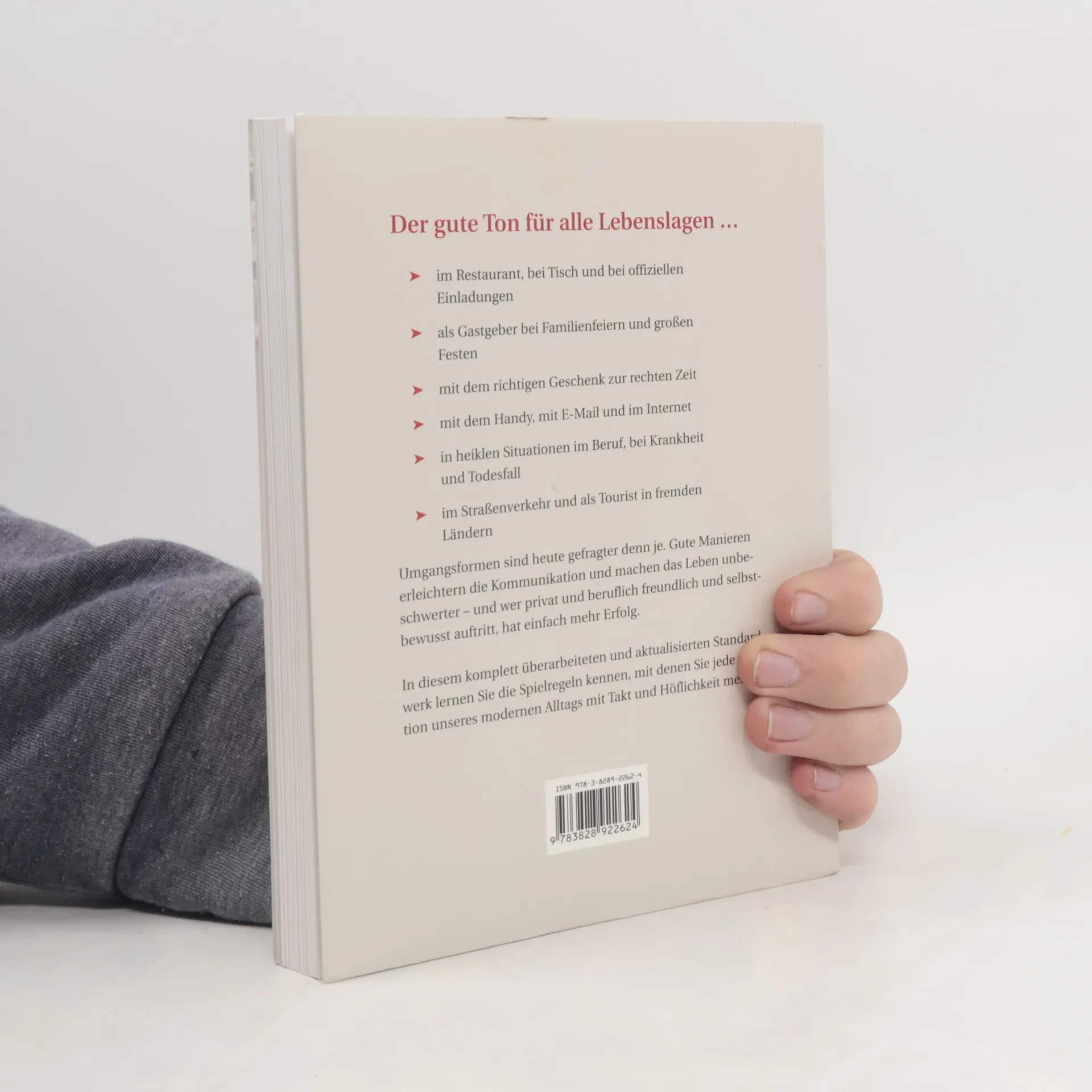 Das Standardwerk! Unerlässliche Verhaltensregeln für den Alltag von heute - vom Straßenverkehr über das Geschäftsessen bis zur Arztpraxis - neu: der Umgang mit Handy und Internet, mein Verhalten in der Öffentlichkeit, im Straßenverkehr, als Patient und als Tourist.