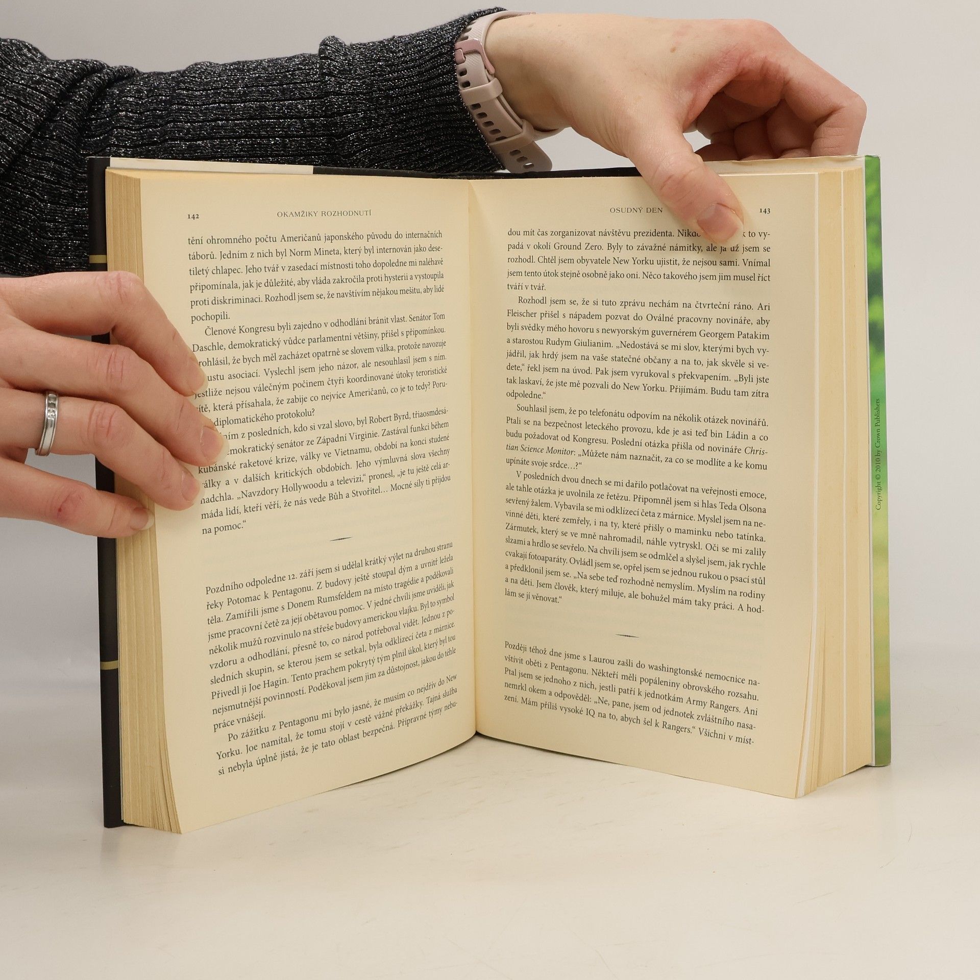 Bývalý prezident George W. Bush ve své knize popisuje klíčová rozhodnutí, která formovala jeho prezidentské období a osobní život. Čtenáři se ocitnou na palubě Air Force One po útocích 11. září 2001, v operačním středisku před válkou v Iráku a v zákulisí Bílého domu, kde se rodila důležitá rozhodnutí amerických prezidentů. Bush hodnotí svá rozhodnutí s časovým odstupem, přičemž se zamýšlí nad nejhoršími okamžiky, jako byl hurikán Katrina, a nad svým zklamáním z neúspěchu v postavení Usámy bin Ládina před soud. Kniha rovněž odhaluje jeho vztahy s předními světovými lídry, s poctivým hodnocením důvěry. Bush sdílí i osobní aspekty svého života, včetně fotografií a dopisů s otcem, a vyjadřuje obdiv a lásku k ženě a dcerám. Mnohé příhody ukazují jeho smysl pro humor. Tento pohled na prezidentské paměti představuje zásadní přelom v žánru, osloví příznivce autora, překvapí kritiky a změní pohled na osm let v historii Ameriky a na osobu, která stála v centru dění.