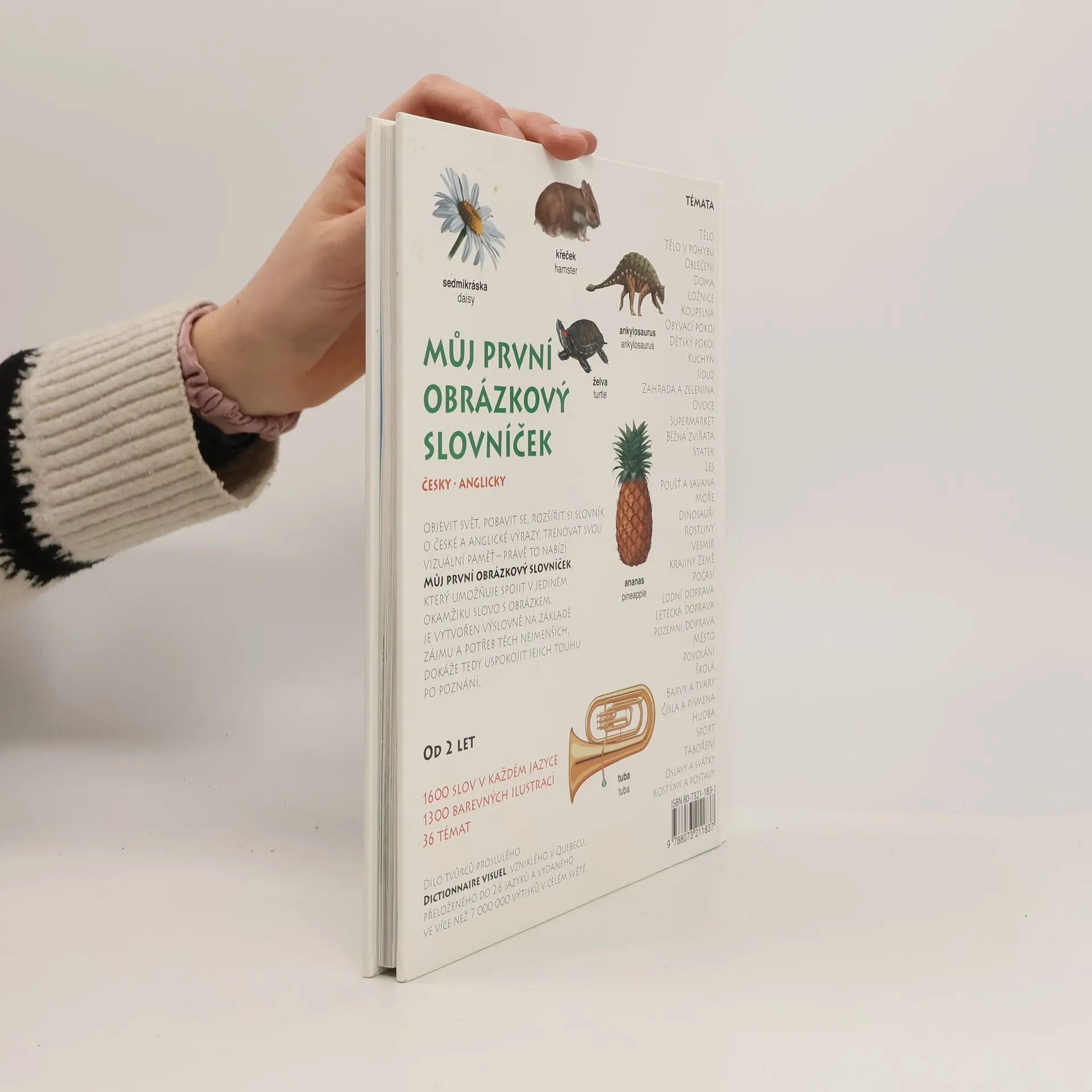 Objevit svět, pobavit se, rozšířit si slovník o české a anglické výrazy, trénovat svou vizuální paměť- právě to nabízí Můj první obrázkový slovníček, který umožňuje spojit v jediném okamži ku slovo s obrázkem. Je vytvořen výslovně na základě zájmu a potřeb těch nejmenších, dokáže tedy uspokojit jejich touhu po poznání. Od 2 let 1600 slov v každém jazyce, 1300 barevných ilustrací, 36 témat