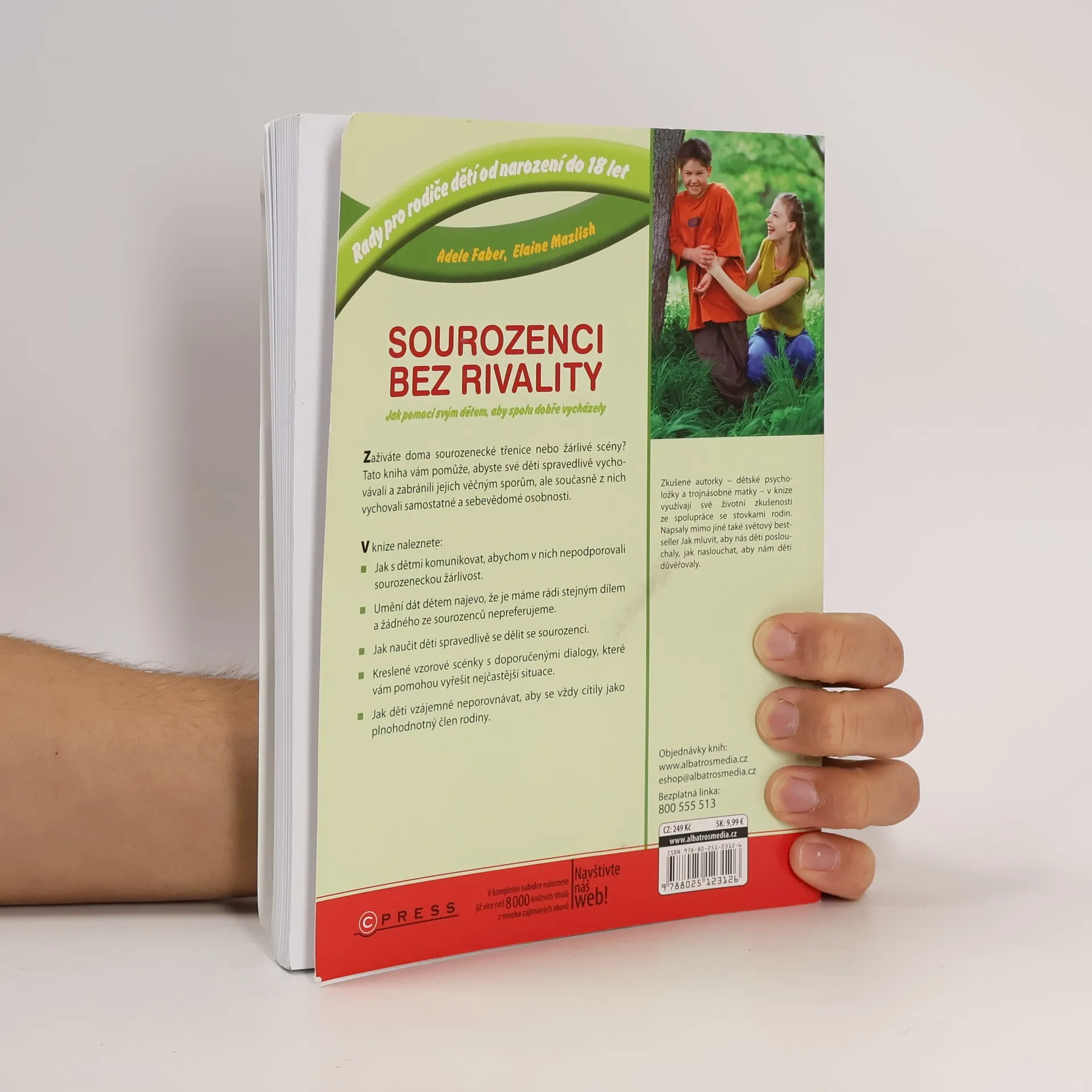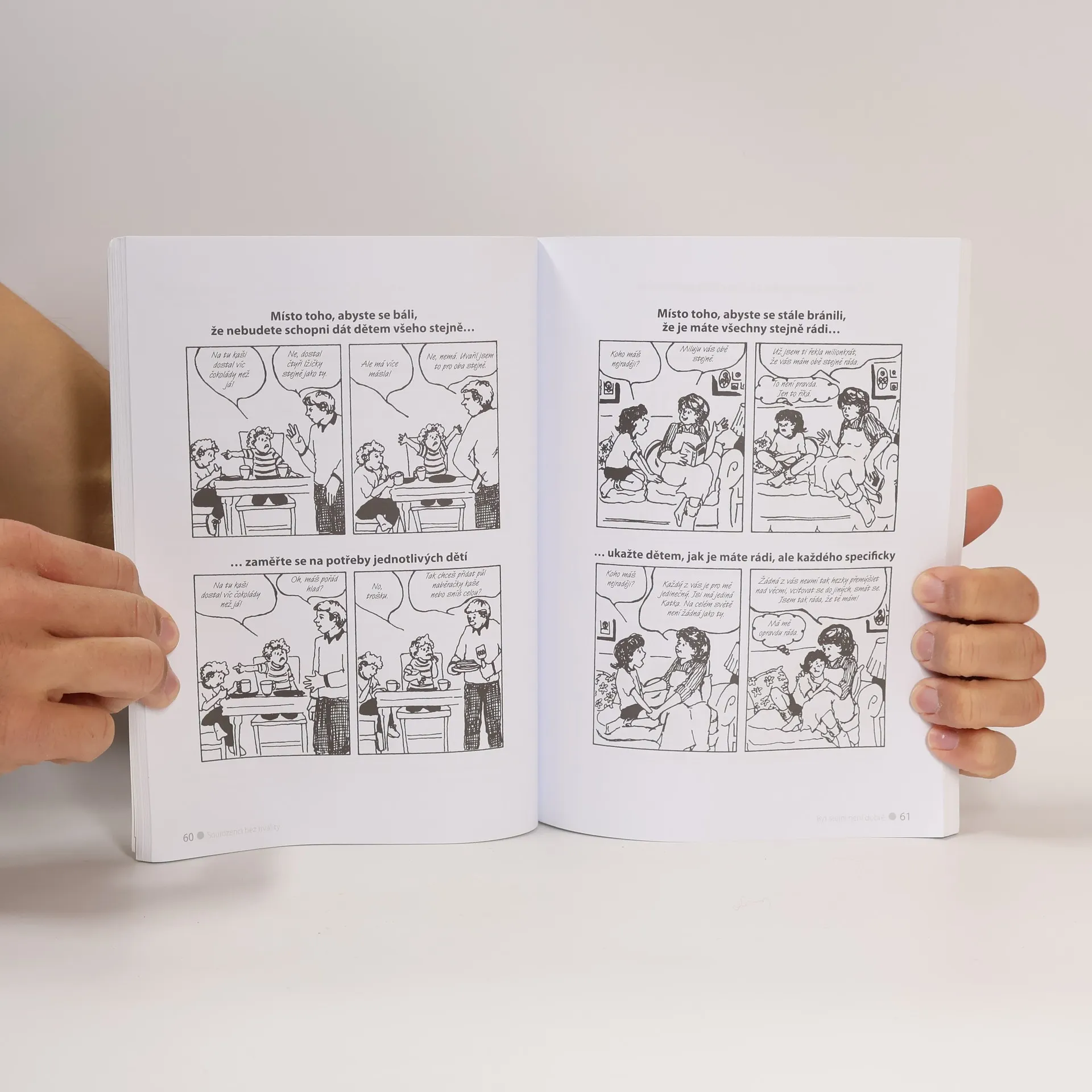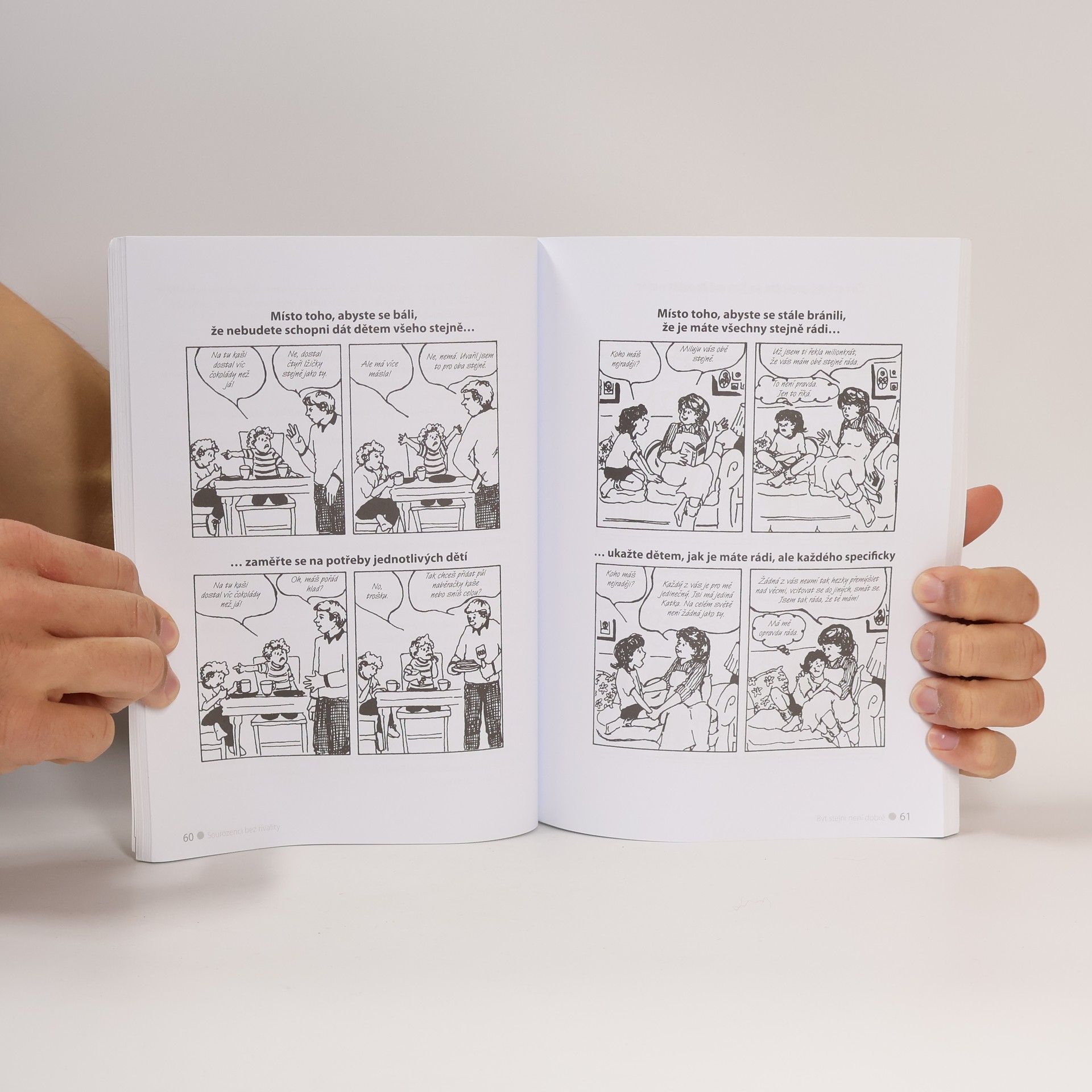 Zažíváte doma sourozenecké třenice nebo žárlivé scény? Tato kniha vám pomůže, abyste své děti spravedlivě vychovávali a zabránili jejich věčným sporům, ale současně z nich vychovali samostatné a sebevědomé osobnosti. V knize naleznete: Jak s dětmi komunikovat, abychom v nich nepodporovali sourozeneckou žárlivost. Umění dát dětem najevo, že je máme rádi stejným dílem a žádného ze sourozenců nepreferujeme. Jak naučit děti spravedlivě se dělit se sourozenci. Kreslené vzorové scénky s doporučenými dialogy, které vám pomohou vyřešit nejčastější situace. Jak děti vzájemně neporovnávat, aby se vždy cítily jako plnohodnotný člen rodiny. Zkušené autorky – dětské psycholožky a trojnásobné matky – v knize využívají své životní zkušenosti ze spolupráce se stovkami rodin. Napsaly mimo jiné také světový bestseller Jak mluvit, aby nás děti poslouchaly, jak naslouchat, aby nám děti důvěřovaly a Jak mluvit, aby nás teenageři poslouchali, jak naslouchat, aby nám teenageři důvěřovali.