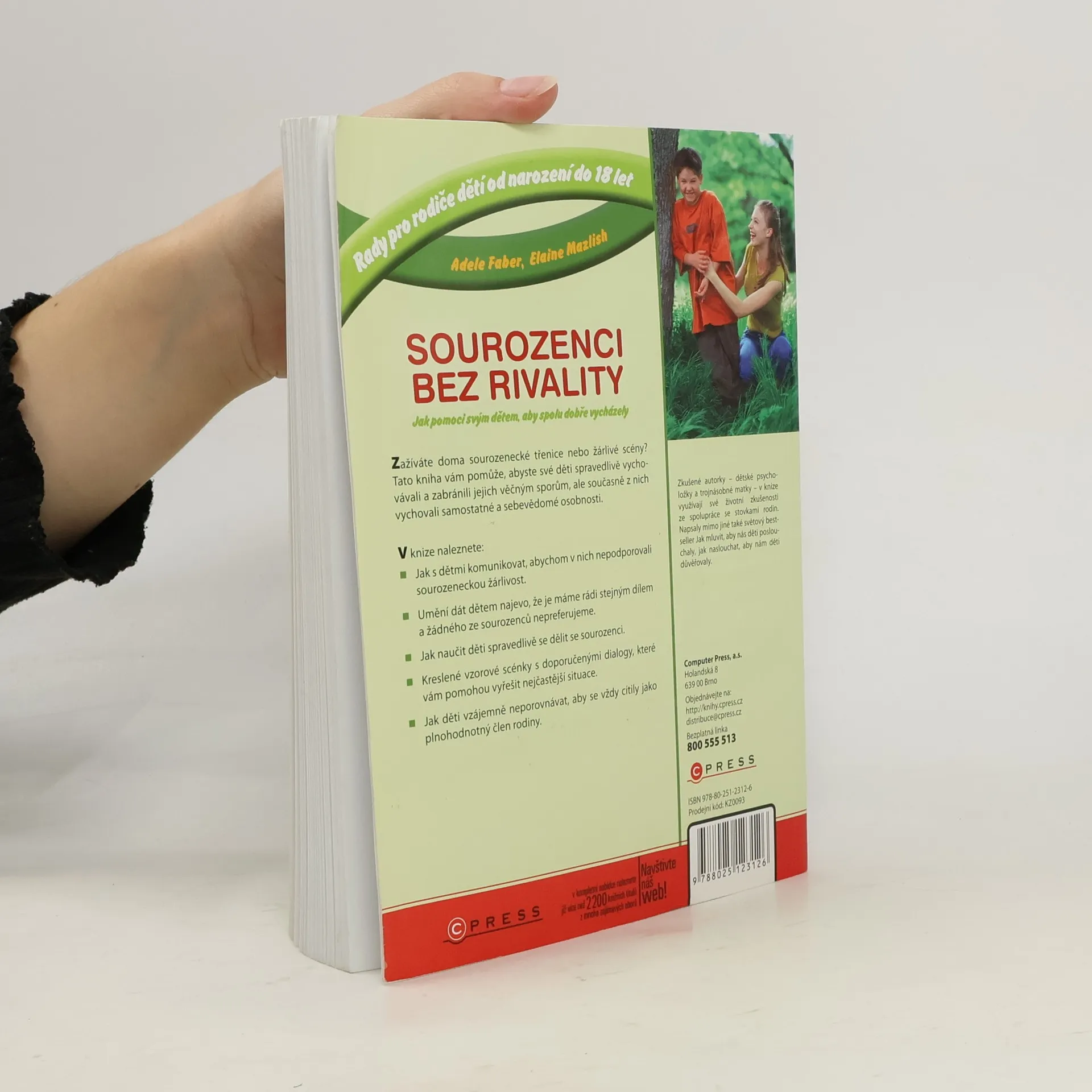 Zažíváte doma sourozenecké třenice nebo žárlivé scény? Tato kniha vám pomůže, abyste své děti spravedlivě vychovávali a zabránili jejich věčným sporům, ale současně z nich vychovali samostatné a sebevědomé osobnosti. V knize naleznete: Jak s dětmi komunikovat, abychom v nich nepodporovali sourozeneckou žárlivost. Umění dát dětem najevo, že je máme rádi stejným dílem a žádného ze sourozenců nepreferujeme. Jak naučit děti spravedlivě se dělit se sourozenci. Kreslené vzorové scénky s doporučenými dialogy, které vám pomohou vyřešit nejčastější situace. Jak děti vzájemně neporovnávat, aby se vždy cítily jako plnohodnotný člen rodiny. Zkušené autorky – dětské psycholožky a trojnásobné matky – v knize využívají své životní zkušenosti ze spolupráce se stovkami rodin. Napsaly mimo jiné také světový bestseller Jak mluvit, aby nás děti poslouchaly, jak naslouchat, aby nám děti důvěřovaly a Jak mluvit, aby nás teenageři poslouchali, jak naslouchat, aby nám teenageři důvěřovali.
