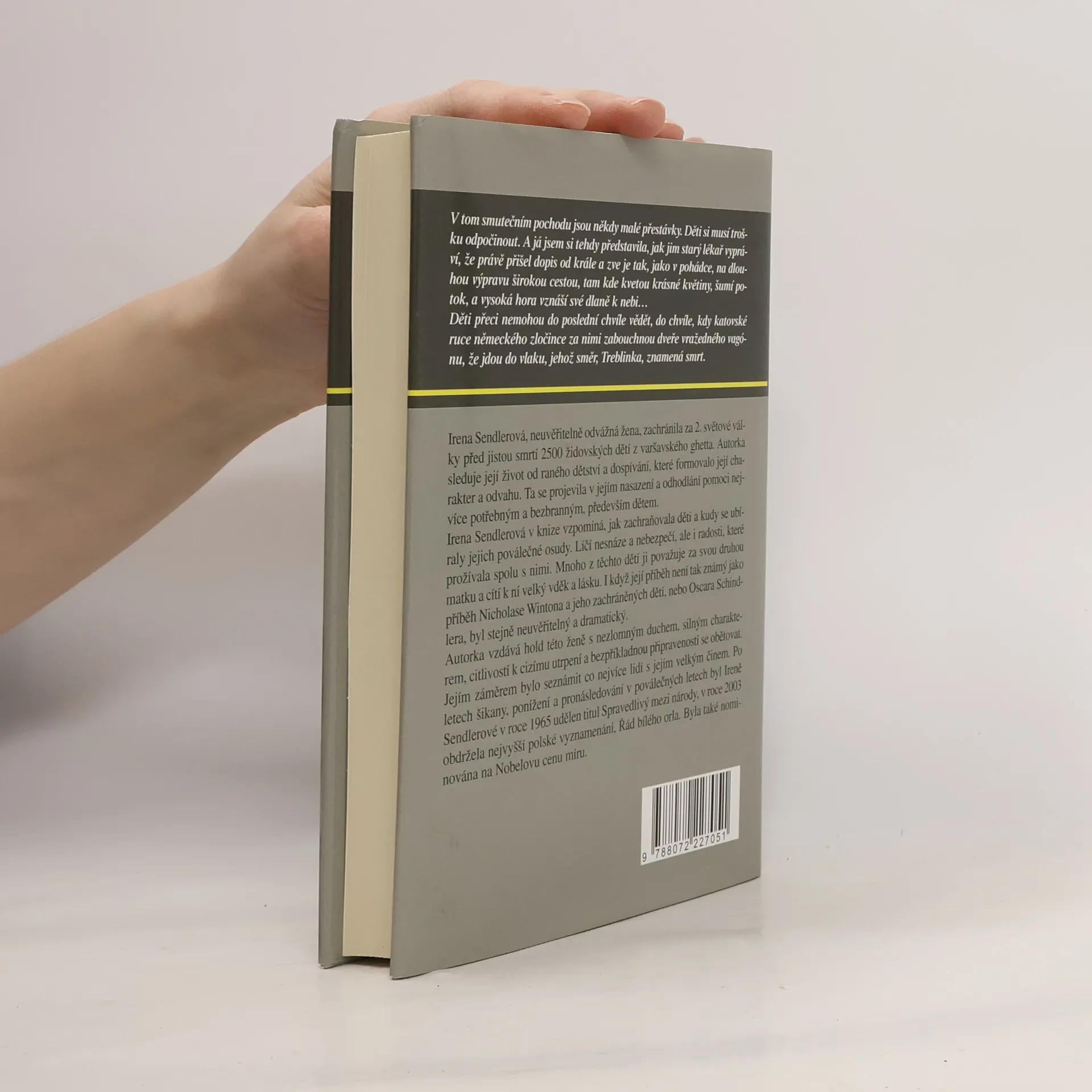 Kniha je příběhem ženy z proslulého varšavského ghetta. Sledujeme její život od raného dětství přes dospívání, které formovalo její charakter a odvahu. Anna Mieszkowska se nespolehla jenom na fabulaci příběhu o odsunu děí z ghetta, ale použila i osobní vzpomínky zdravotní sestry Ireny Sendler, která v knize vypráví o záchraně dětí a i o tom, jak po válce sledovala jejich další osudy. Přestože její příběh není tak znám jako příběh Oskara Schindlera nebo již sira Winstona, přesto Vám kniha Děti Ireny Sendlerové pomůže přiblížit osud této statečné ženy, jejíž příběh byl stejně tak dramatický jako neuvěřitelný. Podle knihy byl natočen i film v režii Johna Kenta Harrisona, s Annou Paquin, která hrála Irene